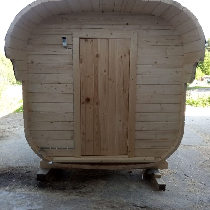 Баня квадро 4 метра по козырьку и 230 см в ширину и высоту, дверь двухпетельная, каленое стекло 6 мм. Доставка поселок Сосновый бор, Выборгский район.
