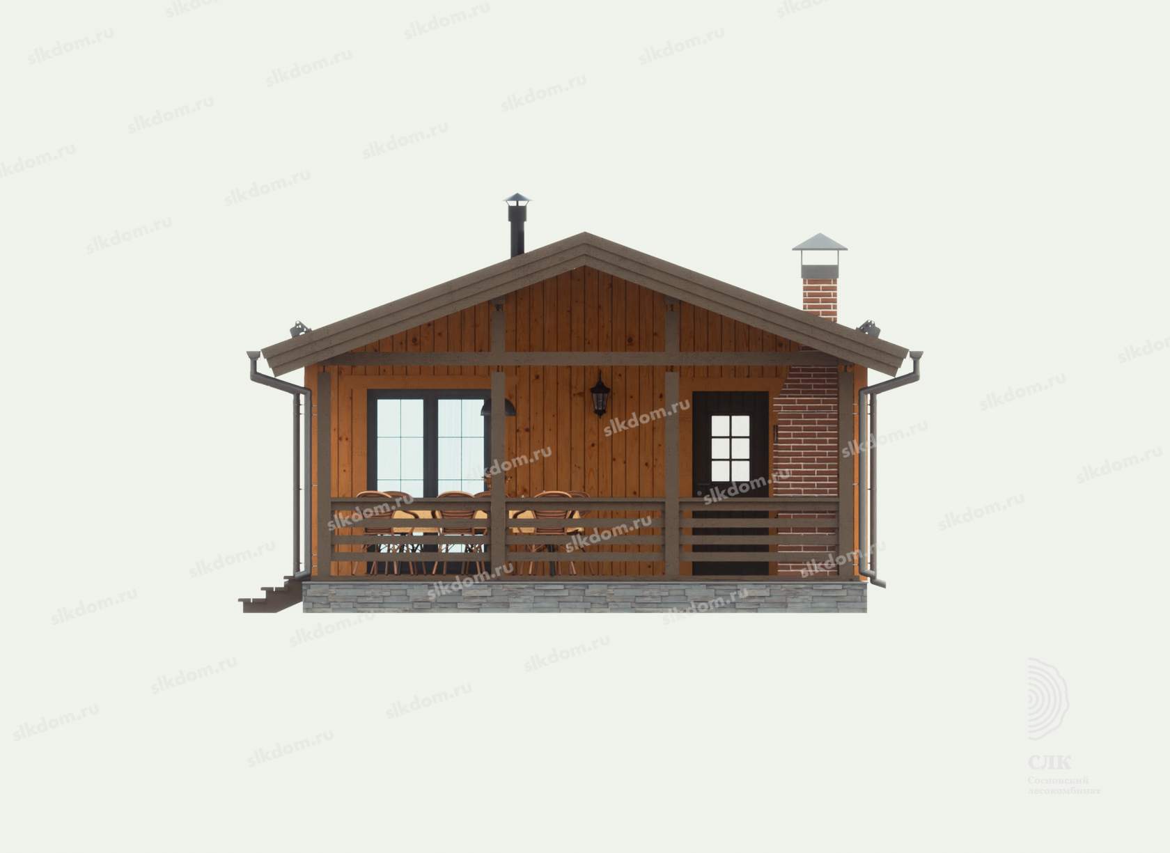 Полы, ступени веранды или крыльца: калиброванная доска камерной сушки толщиной 40 мм материал хвоя. Весь пиломатериал выкрашивается в заводских условиях.