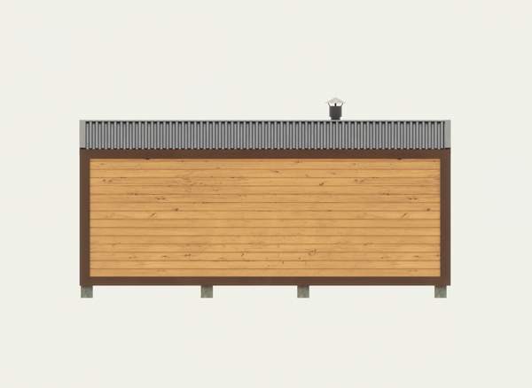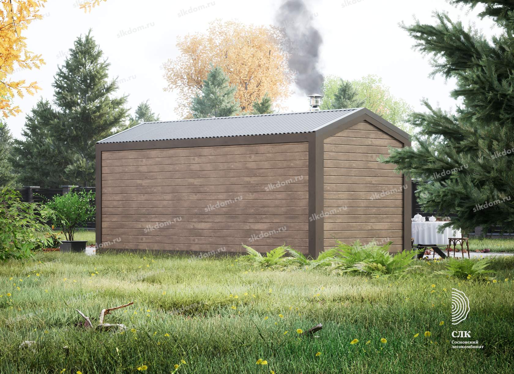 Поверх укладывается доска по длинной части кровли 100x25 мм с шагом 33 см, материал хвоя, ест. влажности. Покрытие кровли - профлист, размер листа 1200х2000 мм, толщина 0,45 мм, цвет на выбор - коричневый, серый, бордовый и зеленый. Покрытие кровли всегда можно заменить на другой материал, цены уточняйте. По краям кровли крепится торцевая планка из оцинкованного металла с полимерным покрытием.