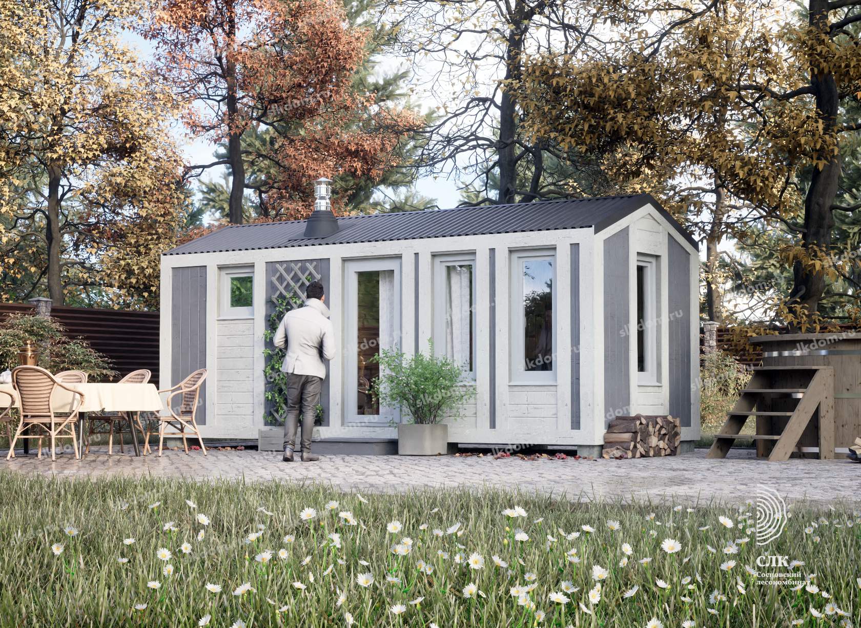 Мобильная баня в стиле барнхаус на три помещения - парная, помывочная и предбанник.