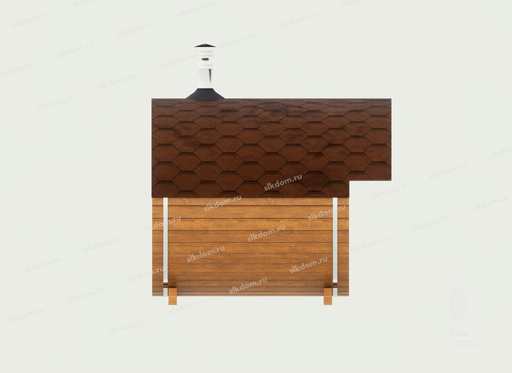 Базовая комплектация включает в себя одно деревянное окно 30x30 см в парном помещении – двойной стеклопакет, в квадро-банях за счет прямых боковых стен есть возможность установки бокового окна 60x60 см в комнату отдыха – доп. опция, стоимость смотрите ниже или уточняйте.