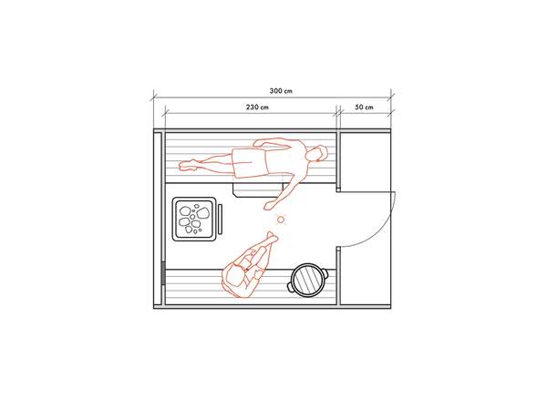 Несмотря на небольшие размеры, в данном типе бань можно обустроить все необходимые для комфортных банных процедур зоны для 2-4 человек.