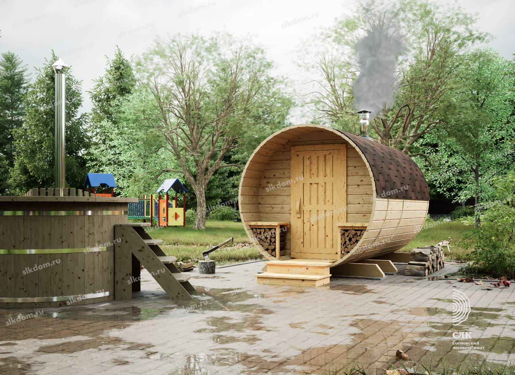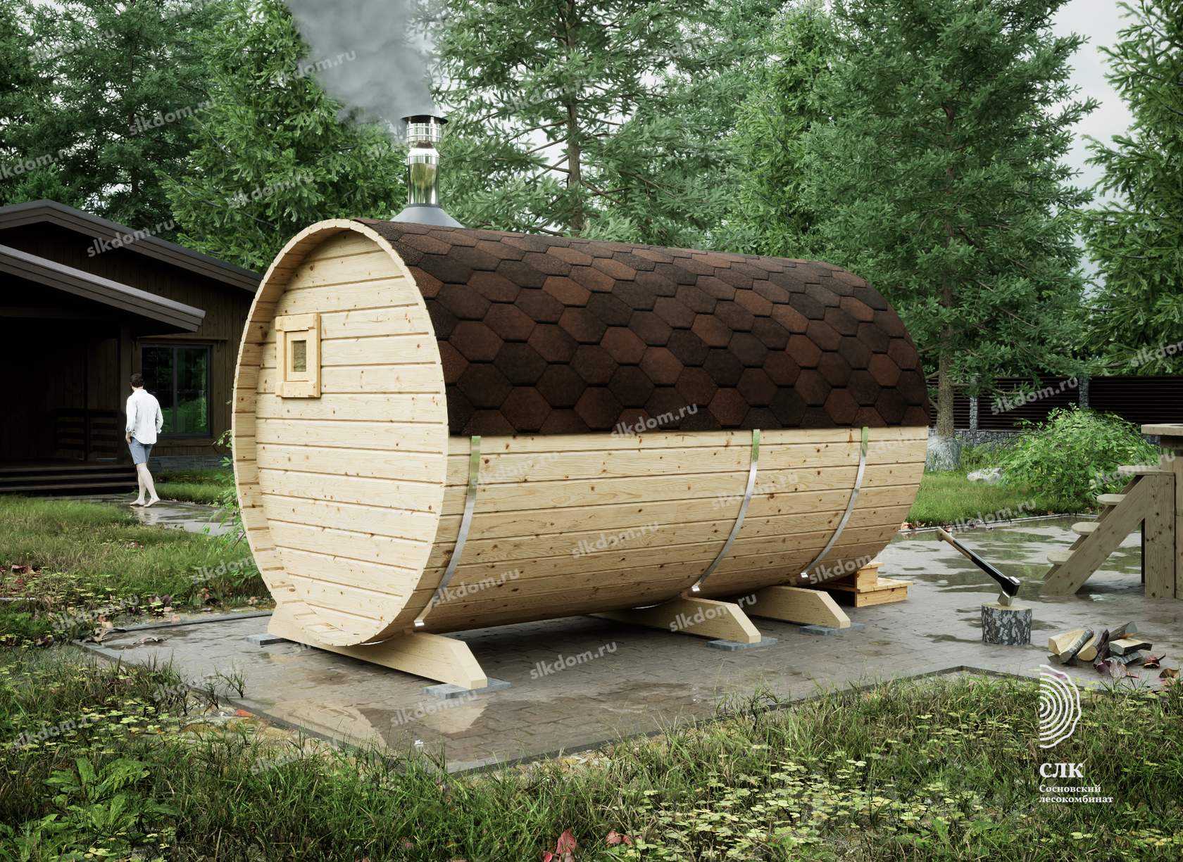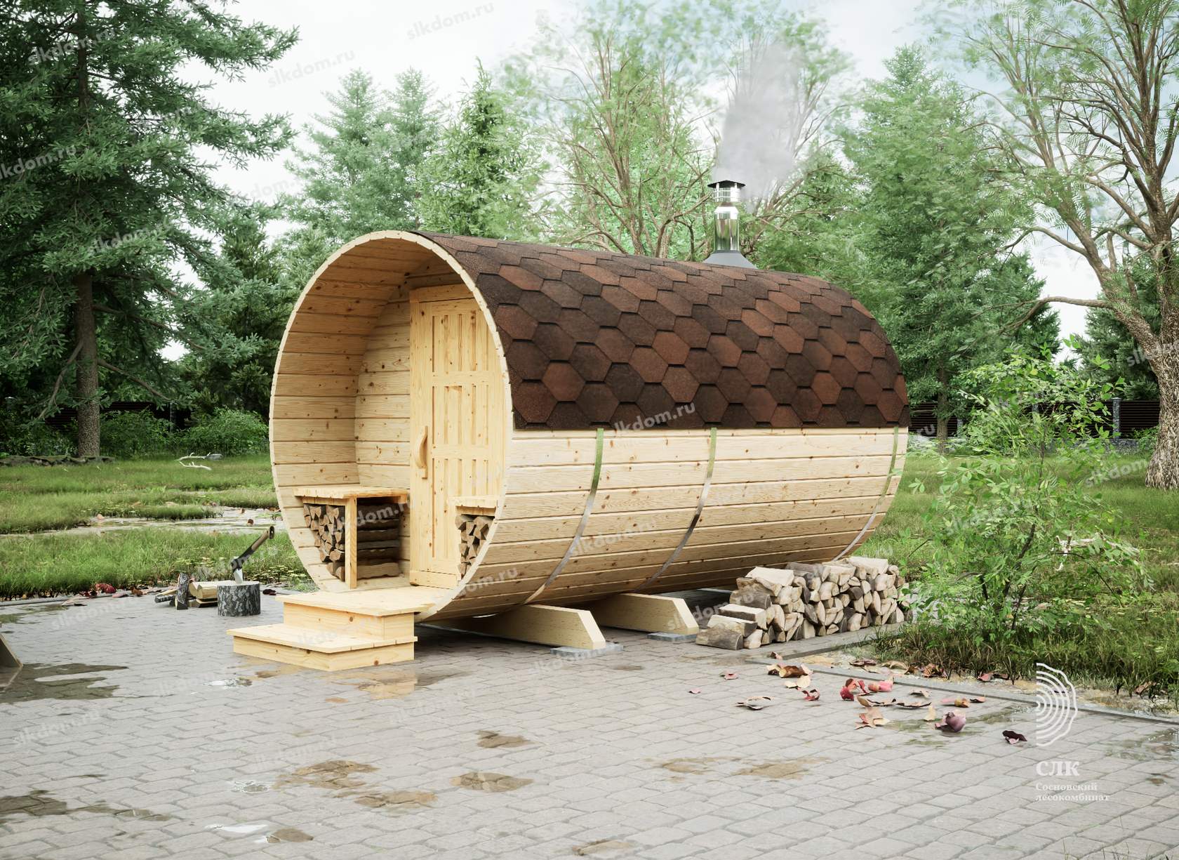 • Экологичность. Бани-бочки изготавливают из чистой древесины, поэтому пар будет здоровым и полезным