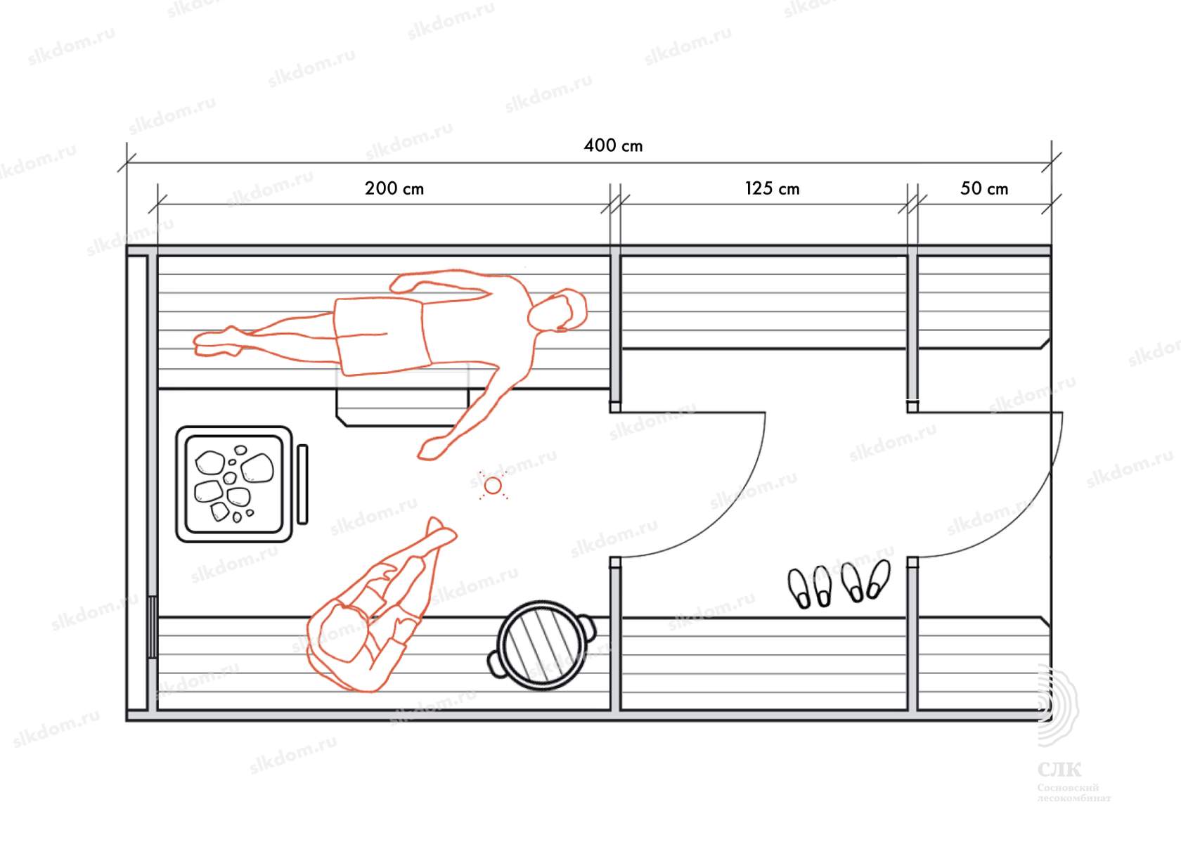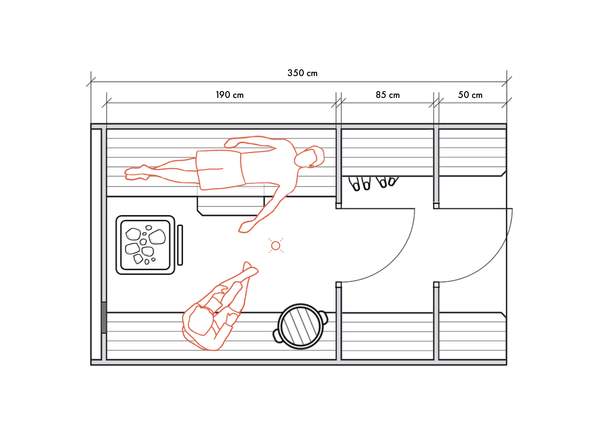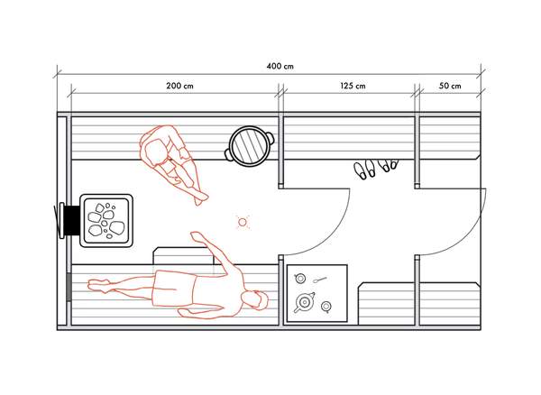 Несмотря на небольшие размеры, в данном типе бань можно обустроить все необходимые для комфортных банных процедур зоны для 2-4 человек.