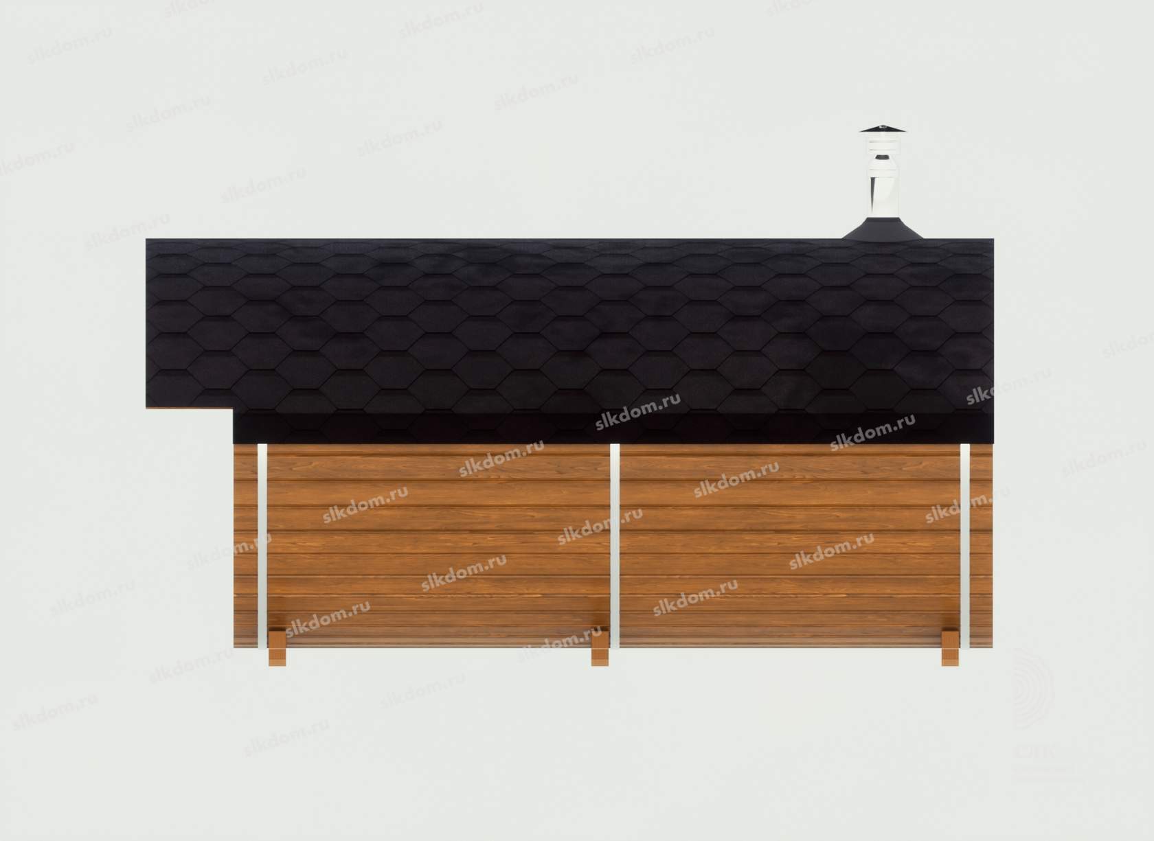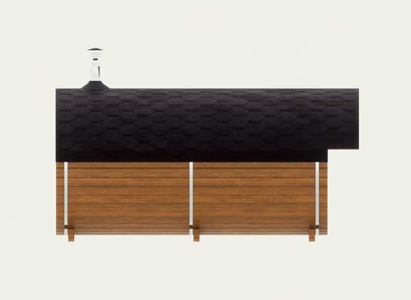 Базовая комплектация включает в себя одно деревянное окно 30x30 см в парном помещении – двойной стеклопакет, в квадро-банях за счет прямых боковых стен есть возможность установки бокового окна 60x60 см в комнату отдыха – доп. опция, стоимость смотрите ниже или уточняйте.