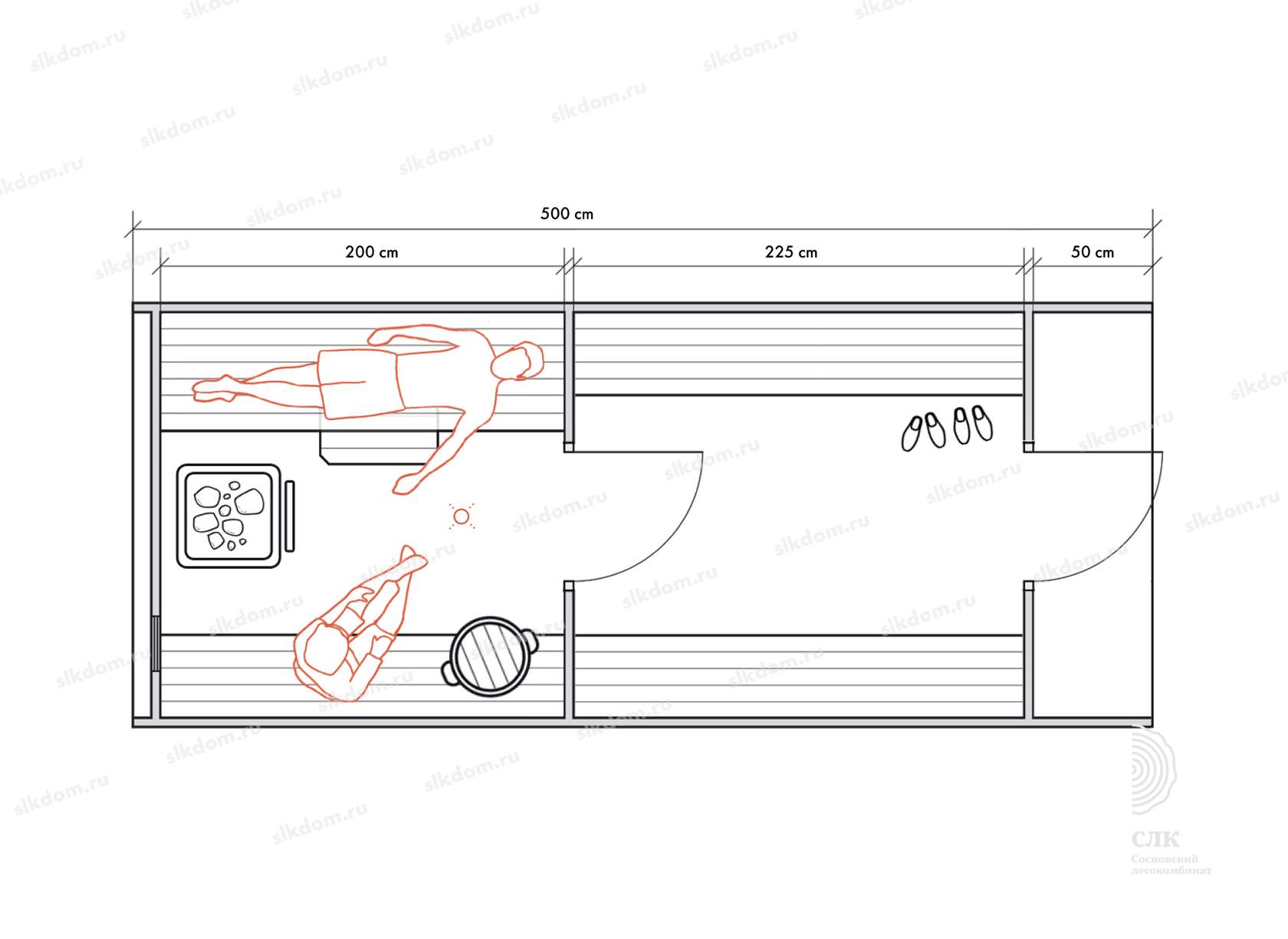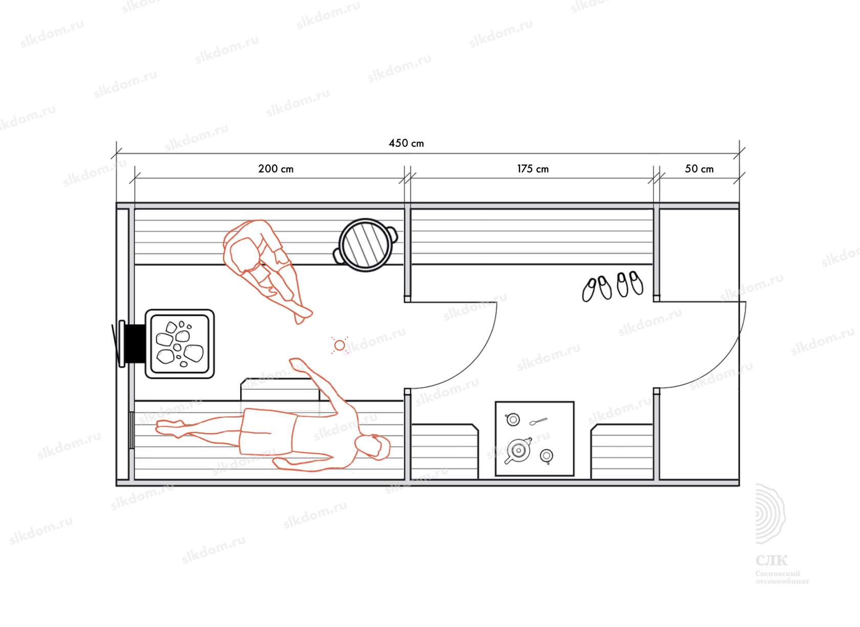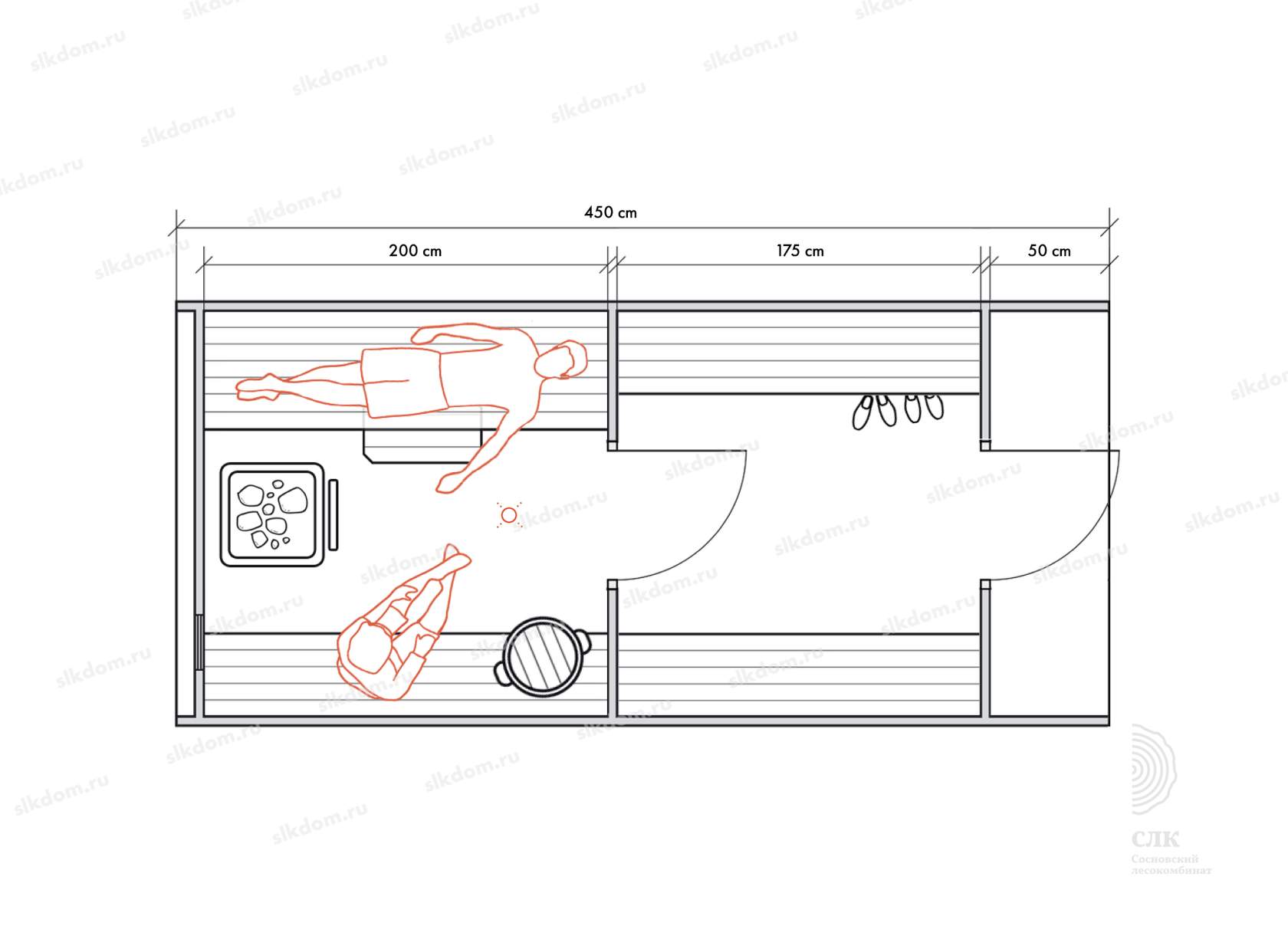 Стены можно двигать - увеличивая или уменьшая помещения, высоту и глубину полков можно менять, расположение тоже, добавлять и убирать дополнительные окна, выносить топку печи или кран с горячей водой за стену. Это все обсуждаемо, мы за расчет не берем деньги! У нас собственное производство, для нас каждая баня - индивидуальная!