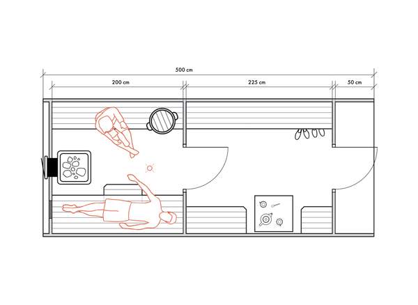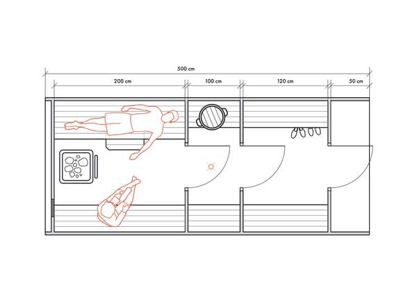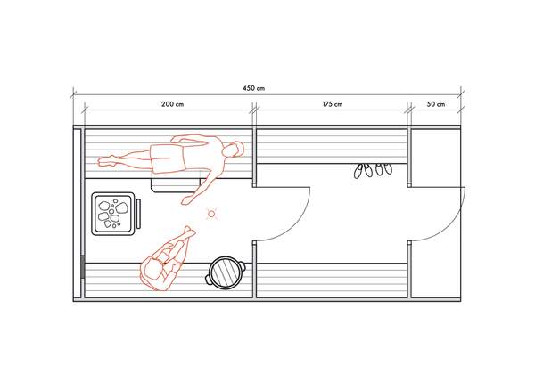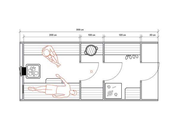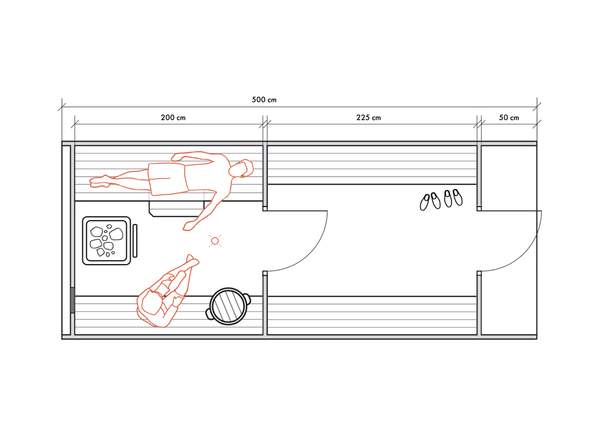 Несмотря на небольшие размеры, в данном типе бань можно обустроить все необходимые для комфортных банных процедур зоны для 2-4 человек.