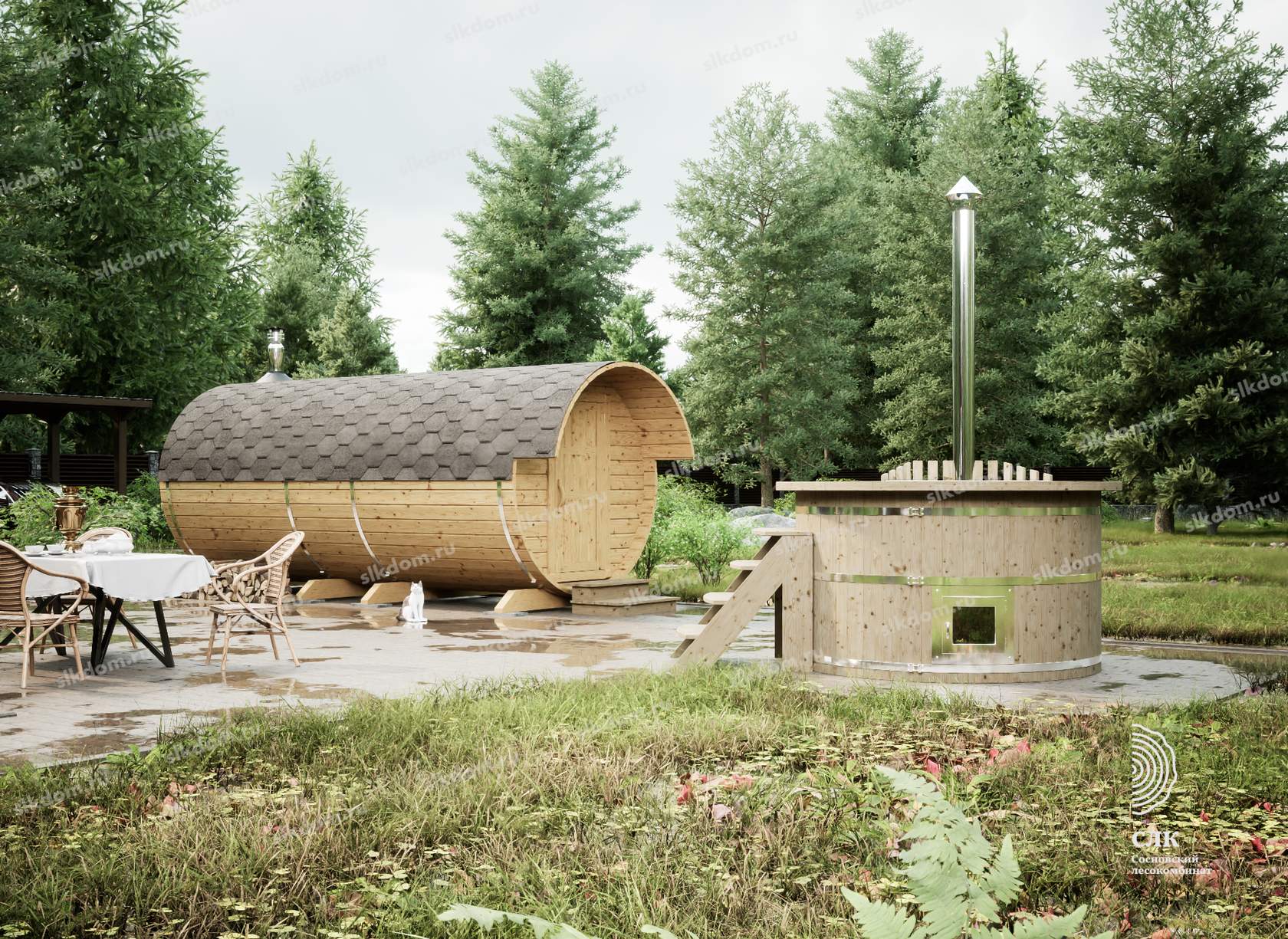 • Экологичность. Бани-бочки изготавливают из чистой древесины, поэтому пар будет здоровым и полезным