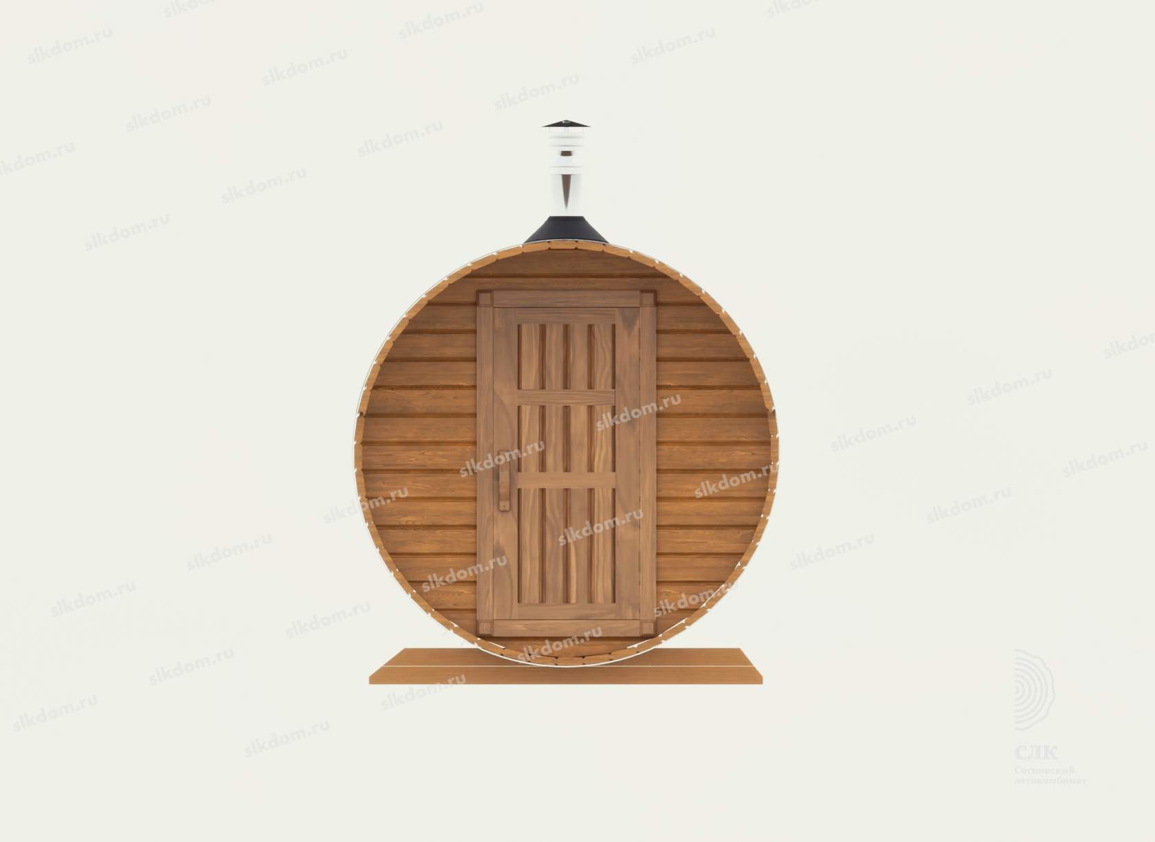 Корпус по наружней стороне стянут обручами из оцинкованного металла толщиной 2 мм, есть возможность подтянуть и ослабить на летний и зимний период использования бани.