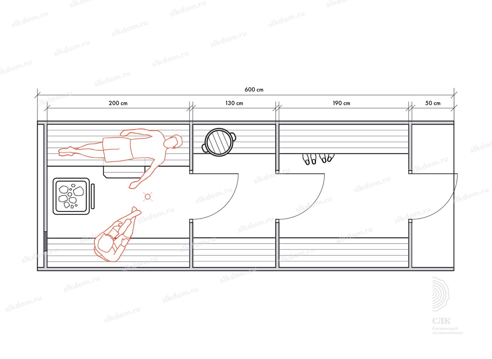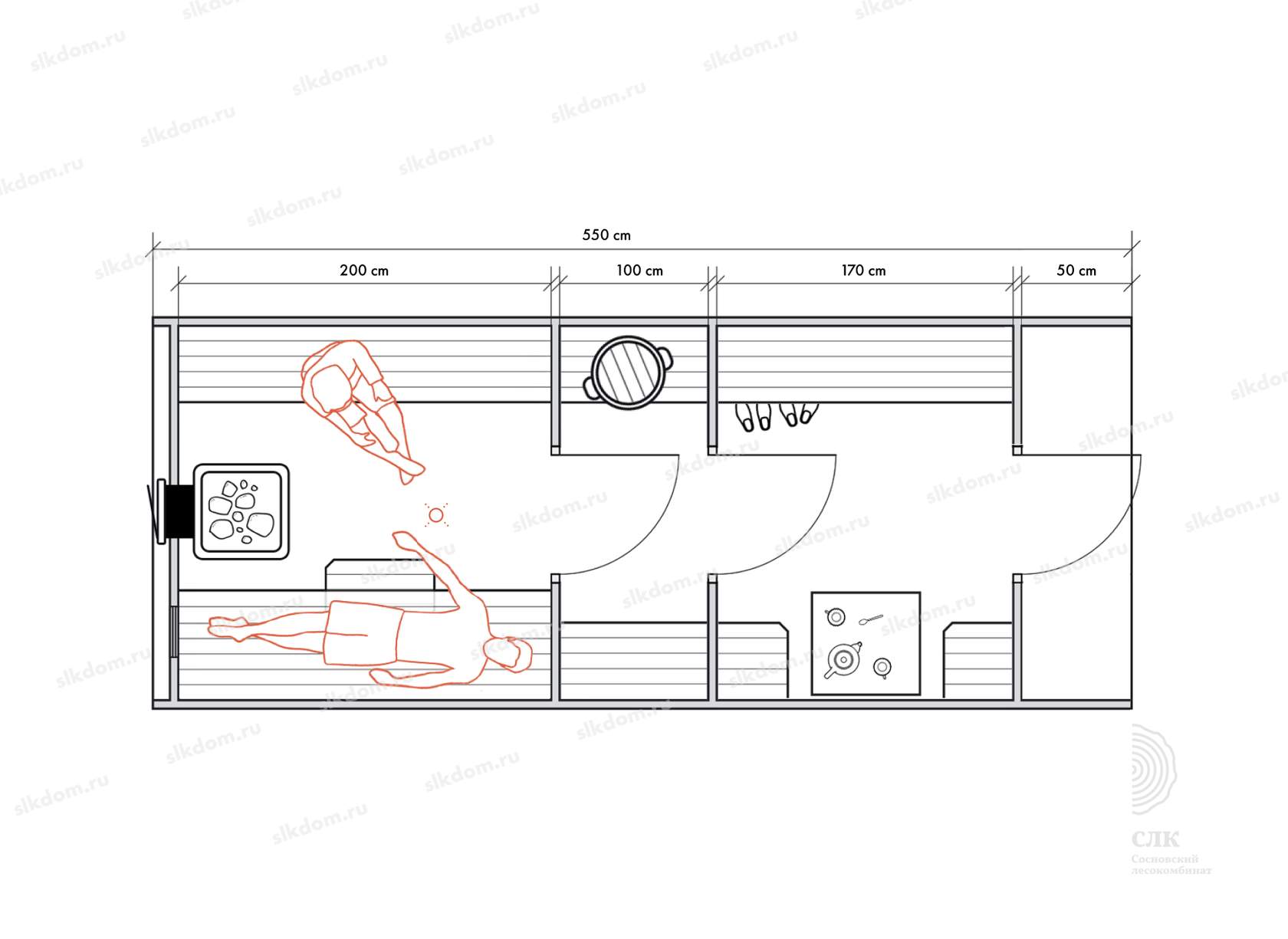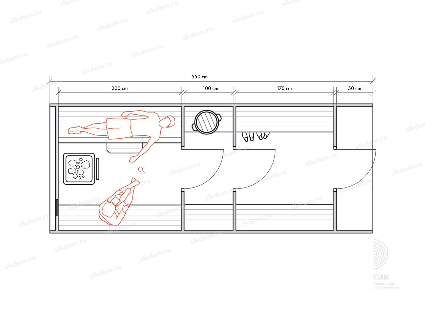 Стены можно двигать - увеличивая или уменьшая помещения, высоту и глубину полков можно менять, расположение тоже, добавлять и убирать дополнительные окна, выносить топку печи или кран с горячей водой за стену. Это все обсуждаемо, мы за расчет не берем деньги! У нас собственное производство, для нас каждая баня - индивидуальная!