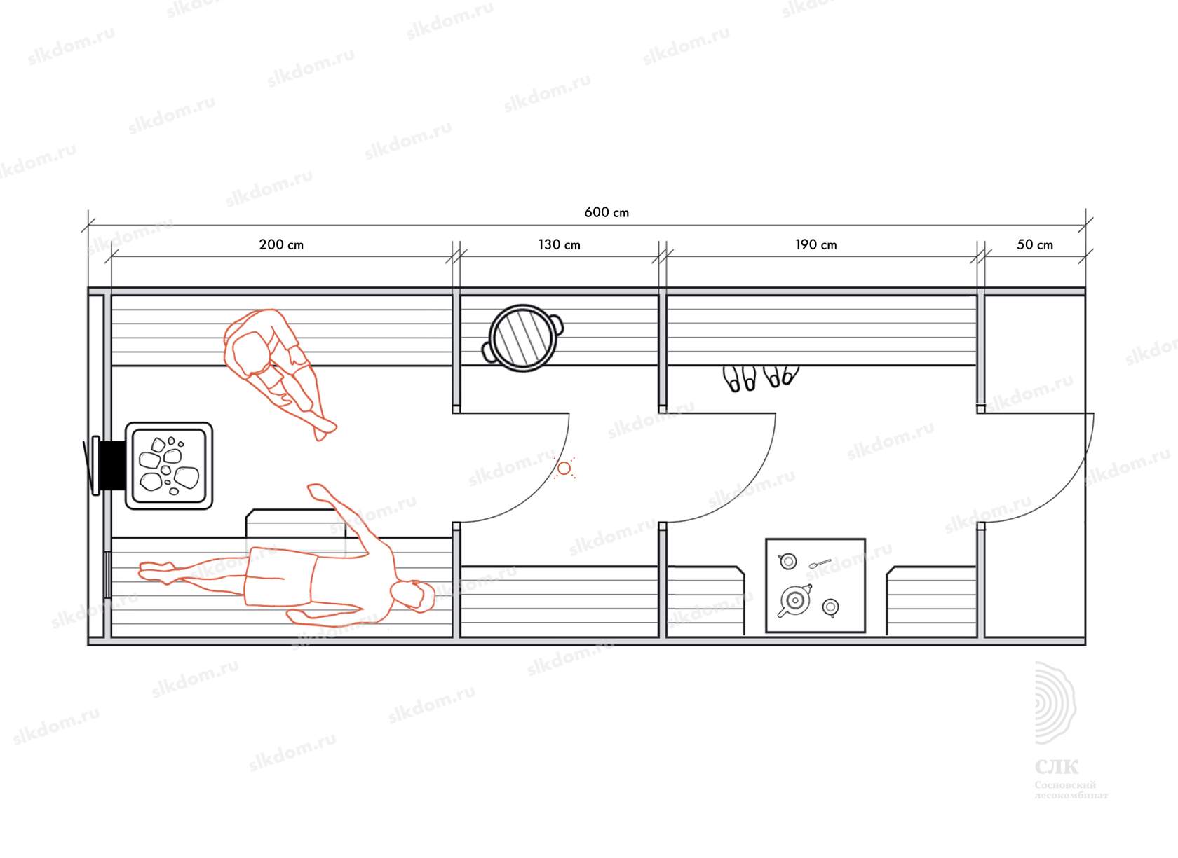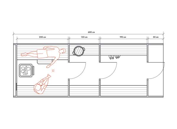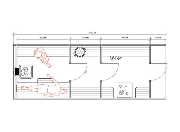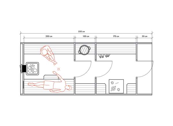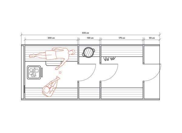 Несмотря на небольшие размеры, в данном типе бань можно обустроить все необходимые для комфортных банных процедур зоны для 2-4 человек.