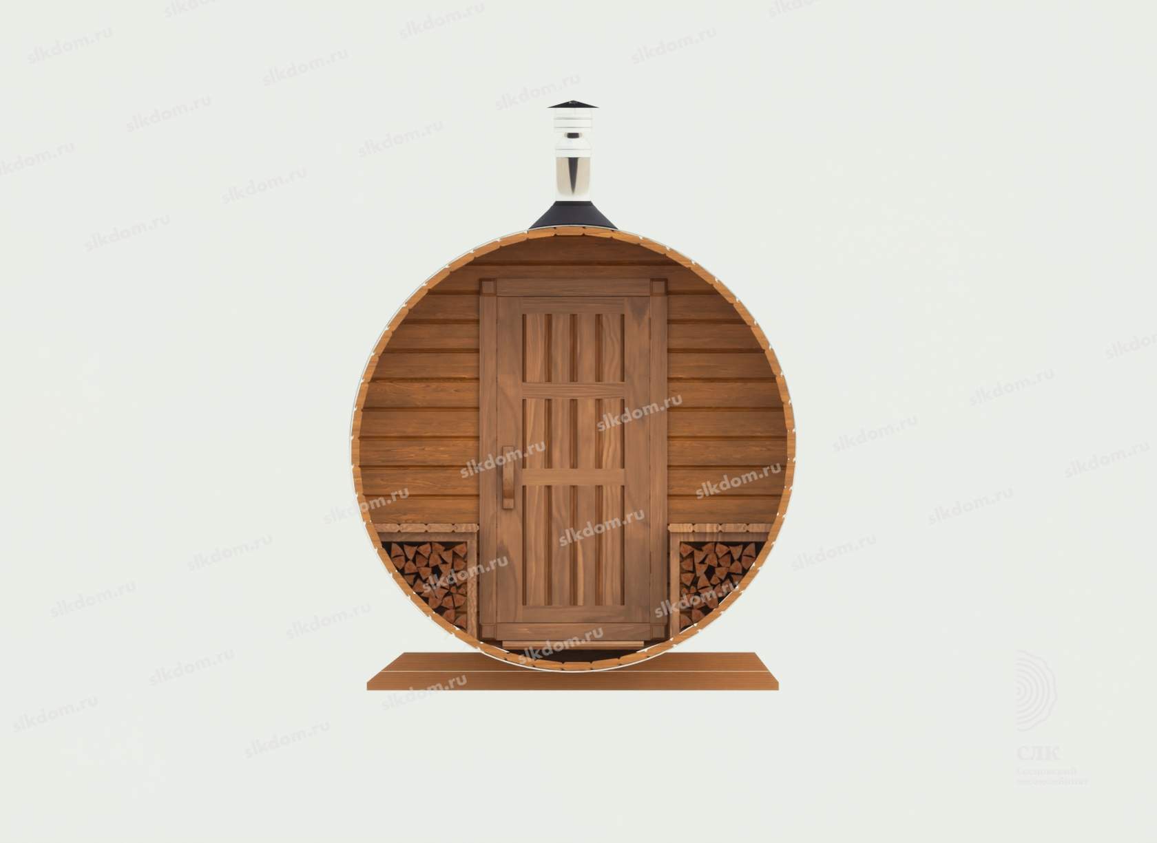 Корпус по наружней стороне стянут обручами из оцинкованного металла толщиной 2 мм, есть возможность подтянуть и ослабить на летний и зимний период использования бани.