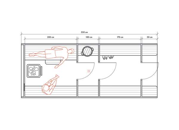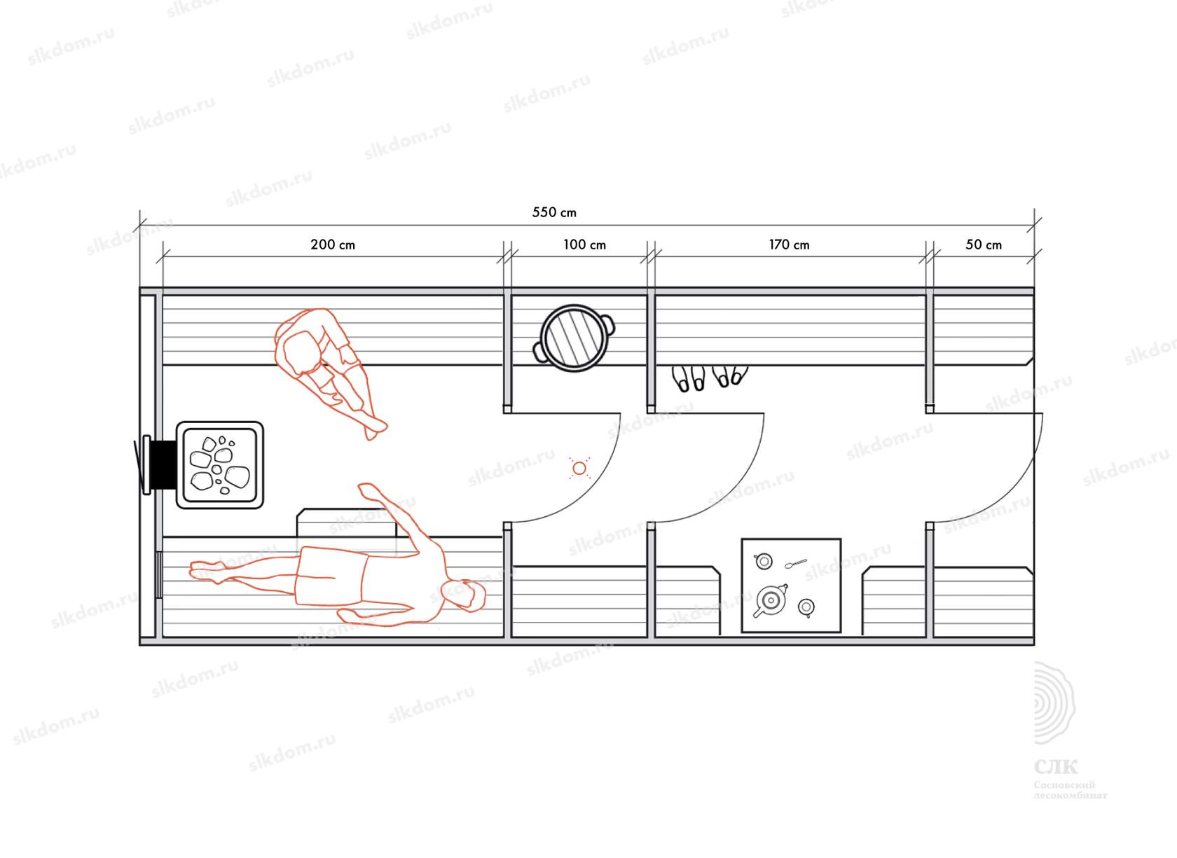 Стены можно двигать - увеличивая или уменьшая помещения, высоту и глубину полков можно менять, расположение тоже, добавлять и убирать дополнительные окна, выносить топку печи или кран с горячей водой за стену. Это все обсуждаемо, мы за расчет не берем деньги! У нас собственное производство, для нас каждая баня - индивидуальная!