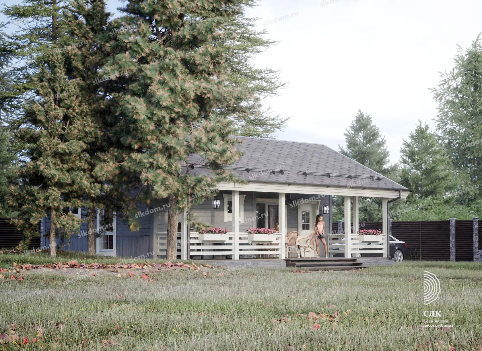 Полы, ступени веранды или крыльца: калиброванная доска камерной сушки толщиной 40 мм материал хвоя. Весь пиломатериал выкрашивается в заводских условиях.