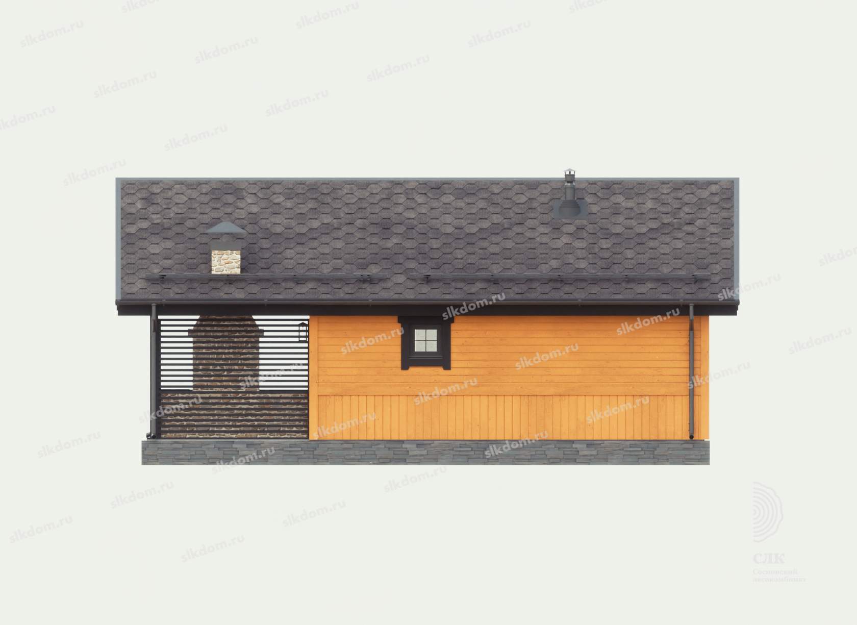 Обвязка основания выполнена из профилированного бруса ест. влажности материал хвоя, размером 150x150 мм антисептированный.
