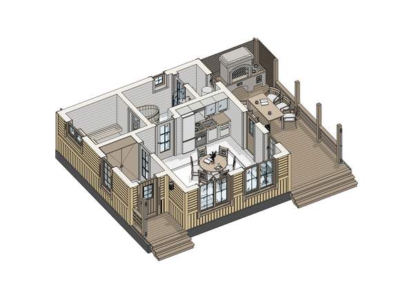 Полы, ступени веранды или крыльца: калиброванная доска камерной сушки толщиной 40 мм материал хвоя. Весь пиломатериал выкрашивается в заводских условиях.