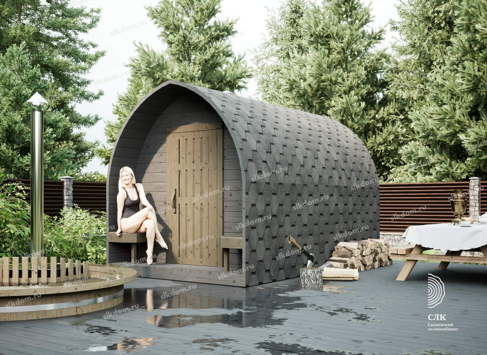 Бани данного типа изготавливаются из древесины камерной сушки, не требует усадки и готова к полноценному использованию после установки на участке.