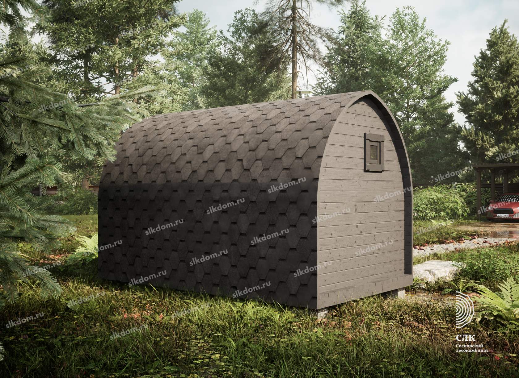 Баня Викинг на два помещения с боковым входом - парная и предбанник. Комфортное размещение от двух до трех человек.