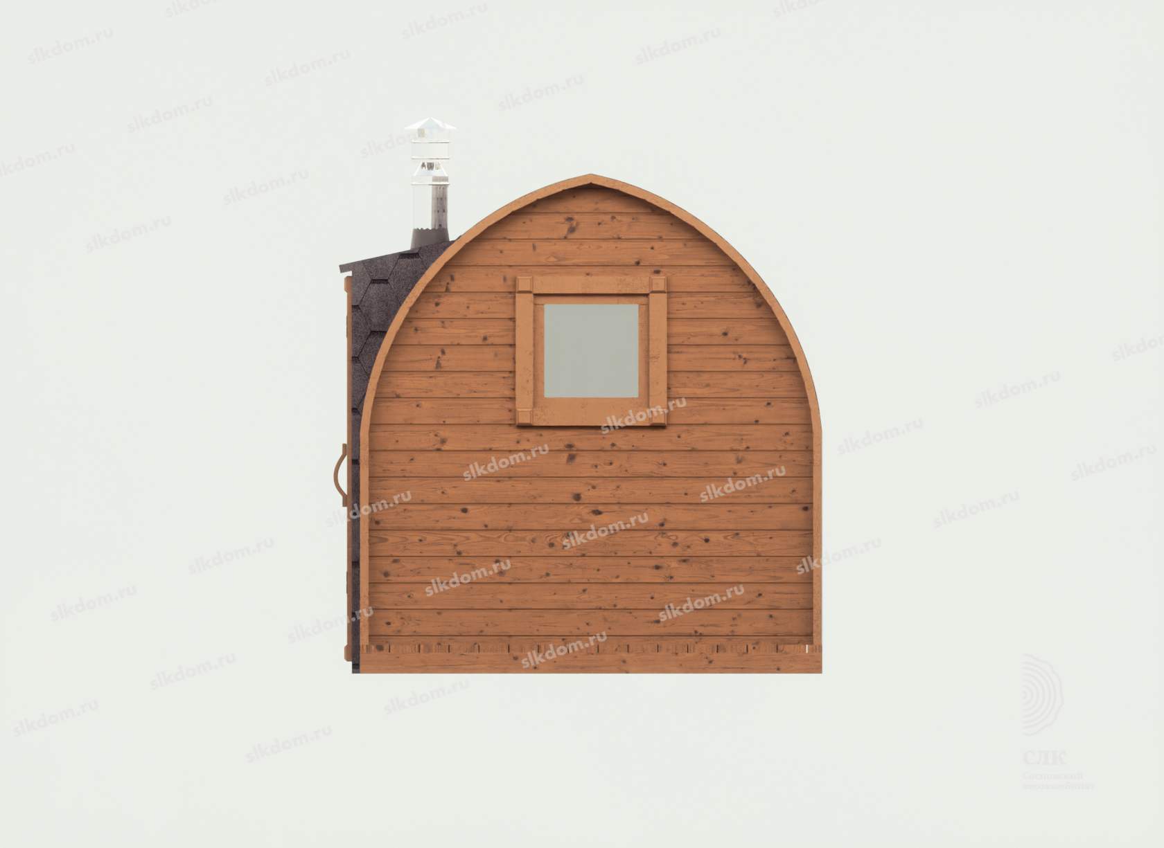 Покрытие корпуса бани, дверей и наличников - два слоя лессирующей краски с антисептиком Текстурол цвета на выбор из каталога, есть доп. опция – заменить лессирующую покраску на укрывного типа, выделить наличники и дверь другим цветом - стоимость уточняйте.