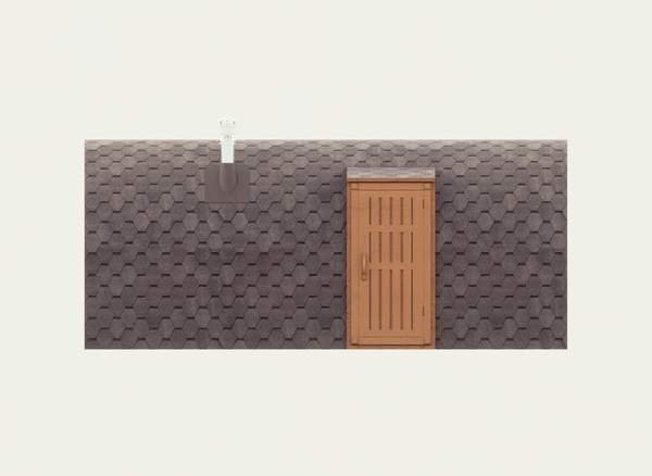 Корпус бани и внутренние перегородки выполнены из сухой доски камерной сушки (влажностью не более 16%), материал хвоя, ламели (доска) запилены в лунный паз и состыкованы между собой, размер 145x45 мм. Ширина корпуса 240 см, высота корпуса 260 см по внешней стороне..