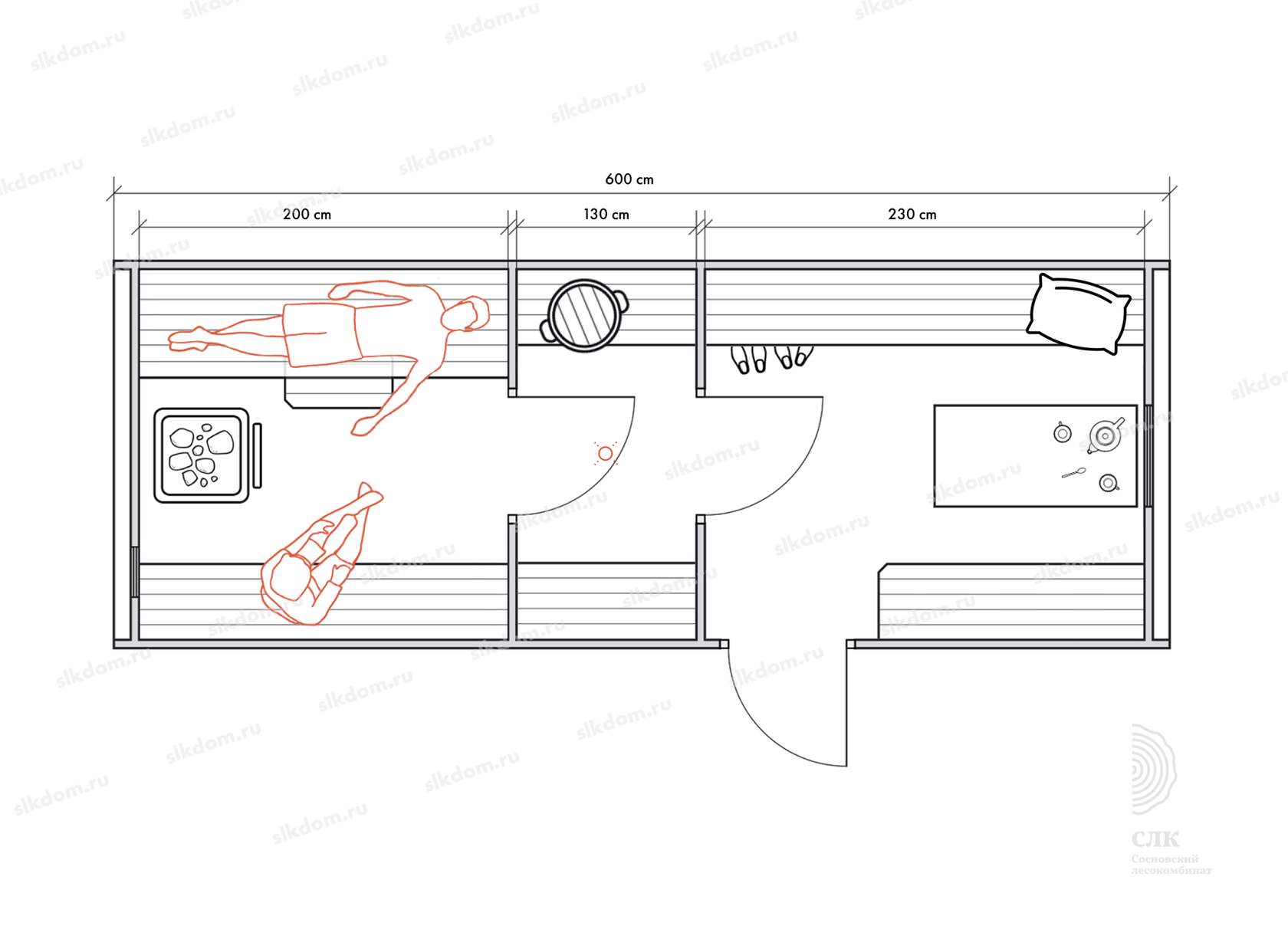 Стены можно двигать - увеличивая или уменьшая помещения, высоту и глубину полков можно менять, расположение тоже, добавлять и убирать дополнительные окна, выносить топку печи или кран с горячей водой за стену. Это все обсуждаемо, мы за расчет не берем деньги! У нас собственное производство, для нас каждая баня - индивидуальная!