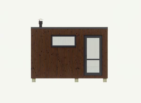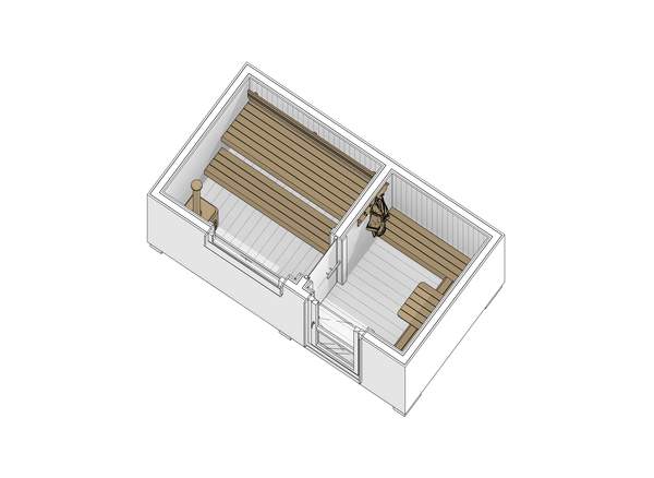 В парном помещении в базовой комплектации устанавливается деревянное окно 1000x500 мм с двойным стеклопакетом, внешнее стекло может имеет зеркальную поверхность (доп. опция), окно открывается на проветривание. В случае с баней Корунд длиной 350 см, устанавливается входная группа размером 2100x1800 мм, тонированная с ламинацией.