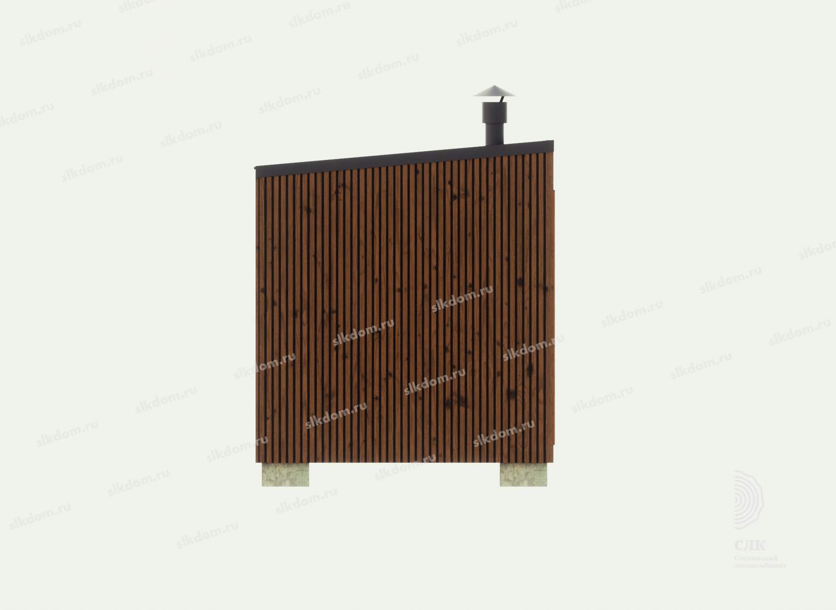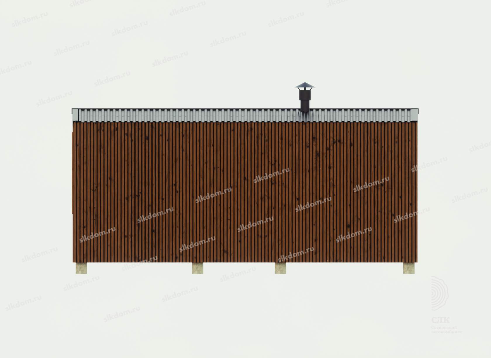 Поверх укладывается доска по длинной части кровли 100x25 мм с шагом 33 см, материал хвоя, ест. влажности. Покрытие кровли - профлист, размер листа 1200х2000 мм, толщина 0,45 мм, цвет на выбор - коричневый, серый, бордовый и зеленый. Покрытие кровли всегда можно заменить на другой материал, цены уточняйте. По краям кровли крепится торцевая планка из оцинкованного металла с полимерным покрытием.