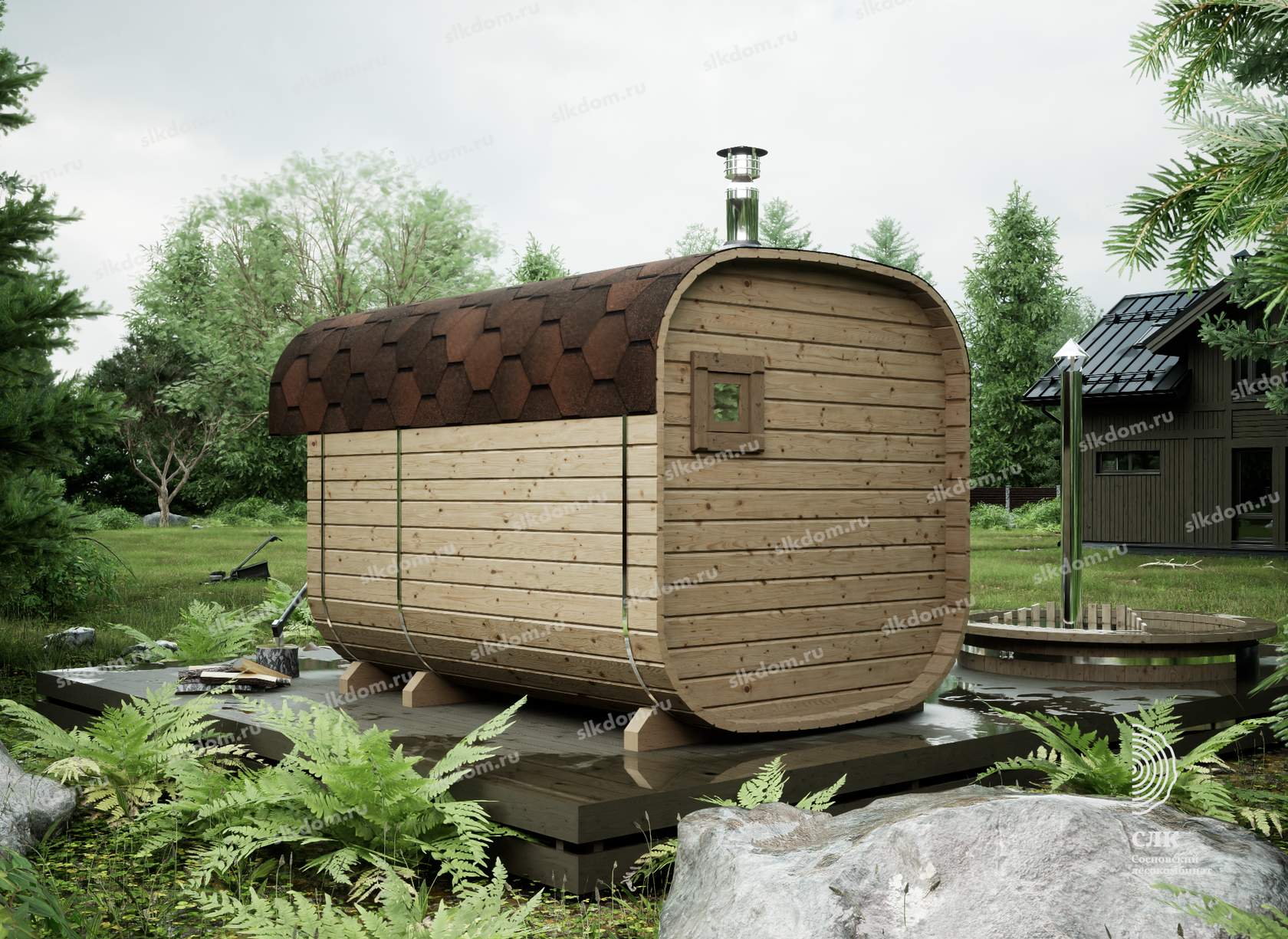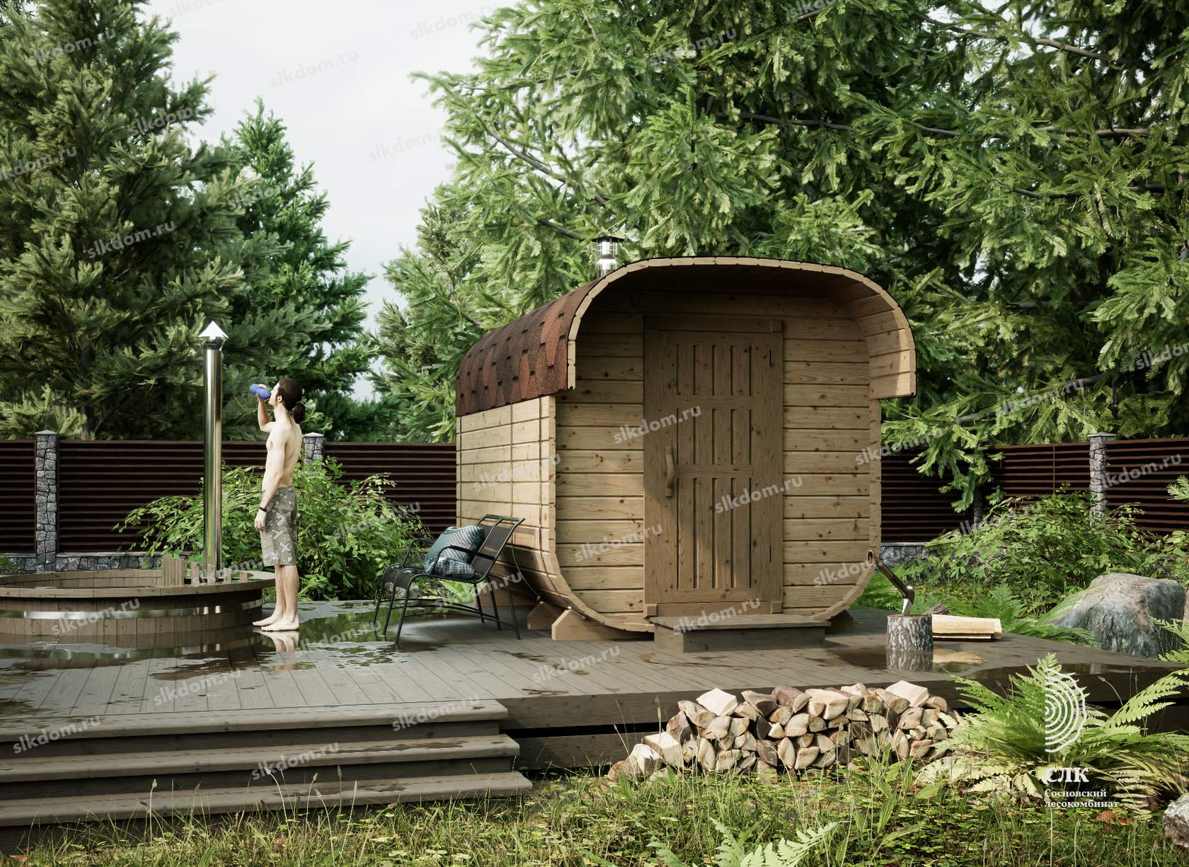 Экологичность. Бани-бочки изготавливают из чистой древесины, поэтому пар будет здоровым и полезным