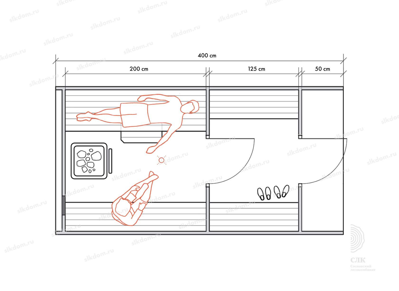 Сидячий глубина 45 см высота 43 см, лежачий - глубина 60 см, высота 90 см, приступок 60x30 см высотой 45 см к нему входит в стоимость, все пологи в базовой комплектации изготовлены из выбранной древесины хвойных пород без смоляных каналов камерной сушки (влажностью не более 16%), можно заменить на материал осина или липа, стоимость уточняйте. Трапы на полу из древесины хвойных пород камерной сушки.