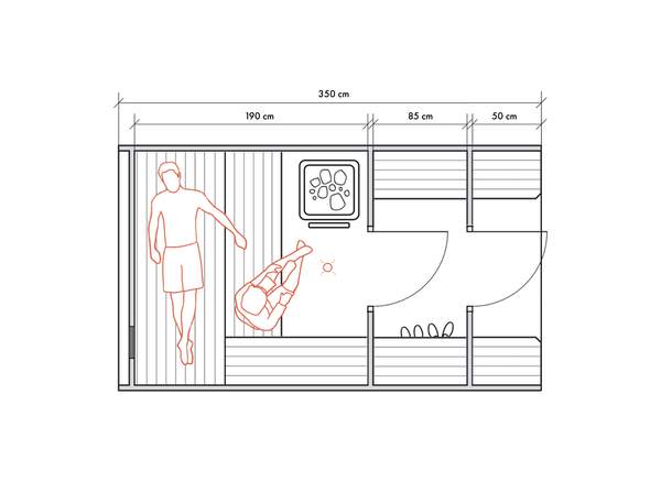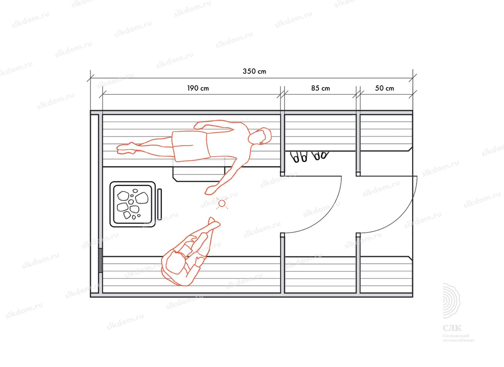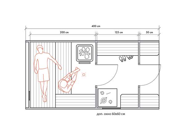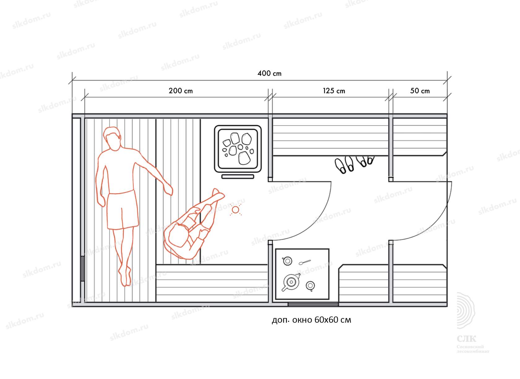 Стены можно двигать - увеличивая или уменьшая помещения, высоту и глубину полков можно менять, расположение тоже, добавлять и убирать дополнительные окна, выносить топку печи или кран с горячей водой за стену. Это все обсуждаемо, мы за расчет не берем деньги! У нас собственное производство, для нас каждая баня - индивидуальная!