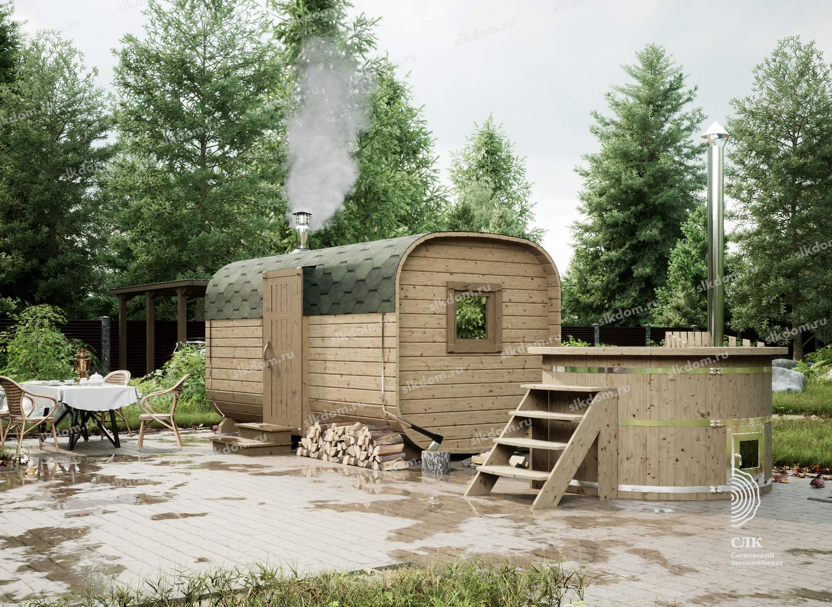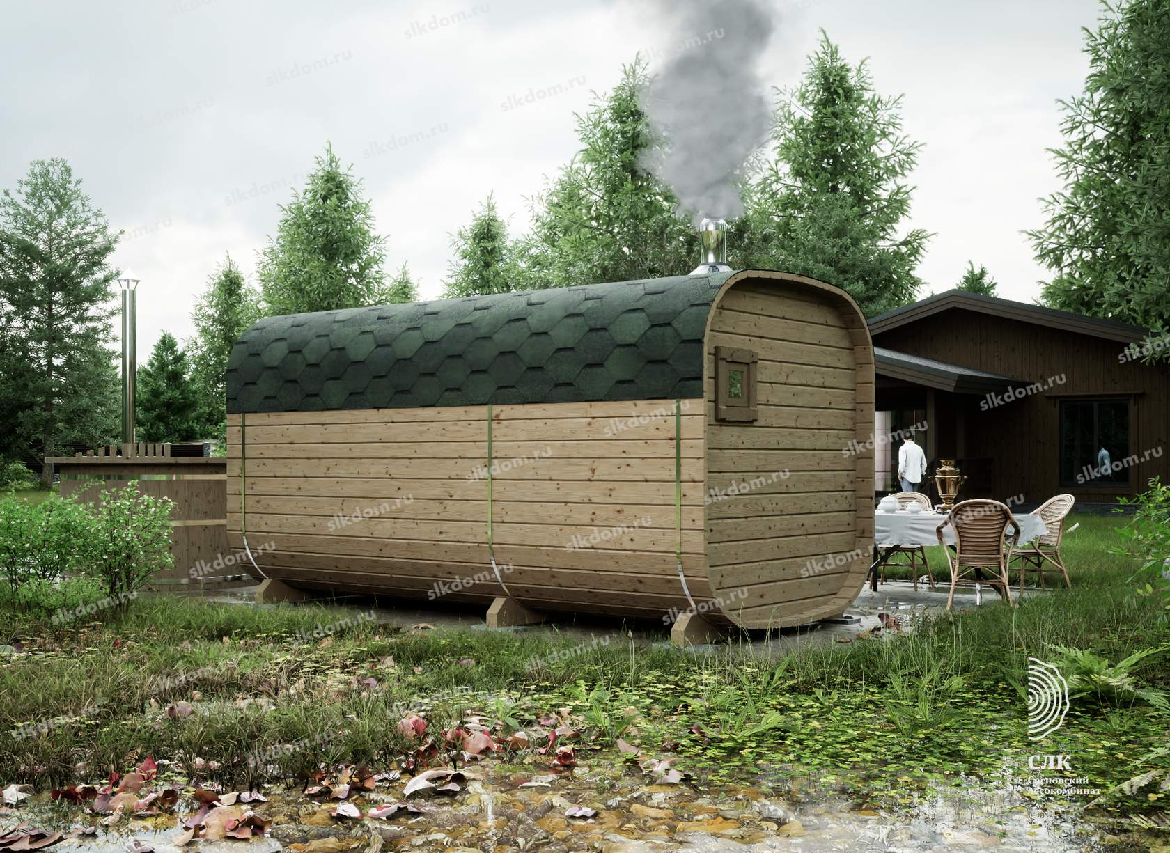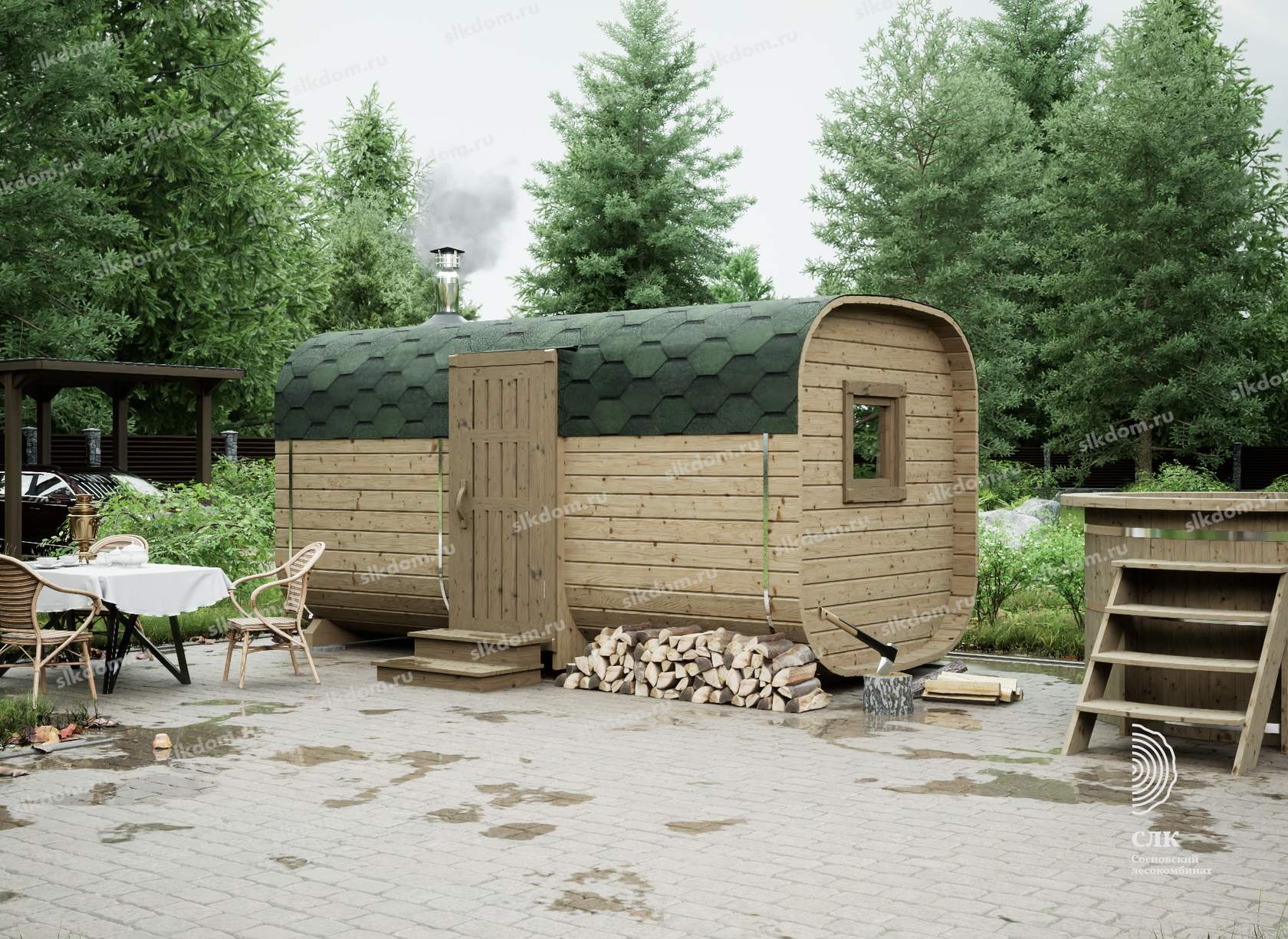 Экологичность. Бани-бочки изготавливают из чистой древесины, поэтому пар будет здоровым и полезным