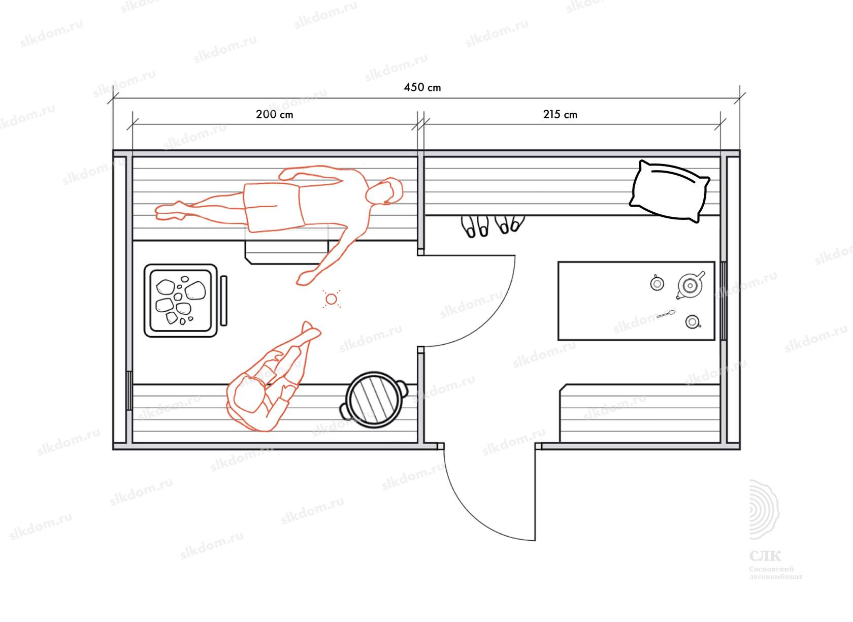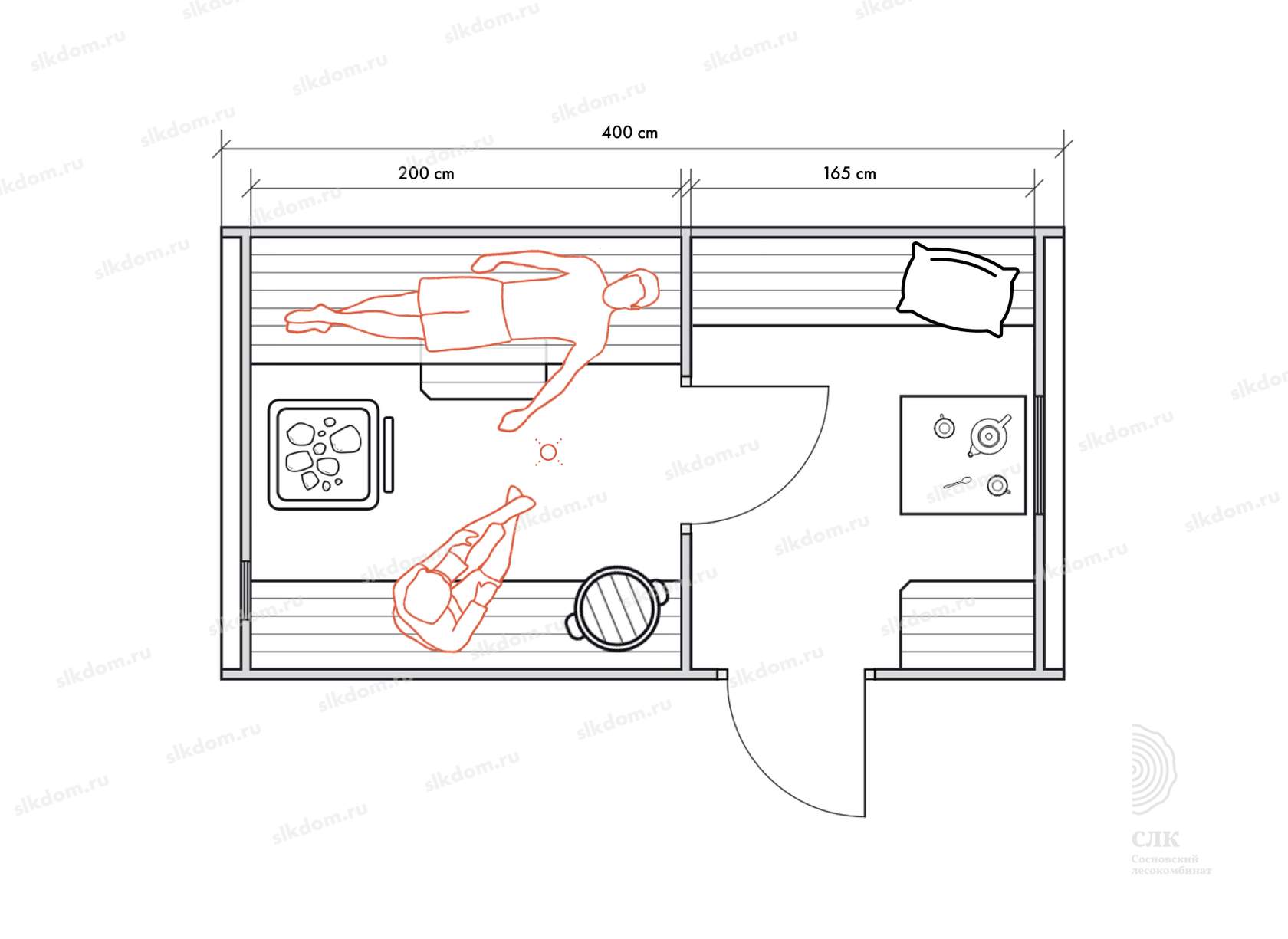 Стены можно двигать - увеличивая или уменьшая помещения, высоту и глубину полков можно менять, расположение тоже, добавлять и убирать дополнительные окна, выносить топку печи или кран с горячей водой за стену. Это все обсуждаемо, мы за расчет не берем деньги! У нас собственное производство, для нас каждая баня - индивидуальная!