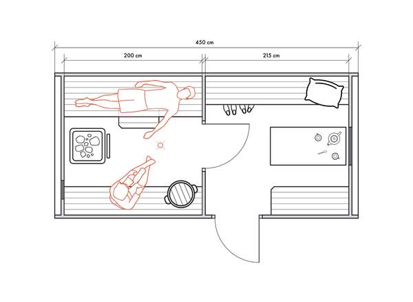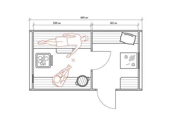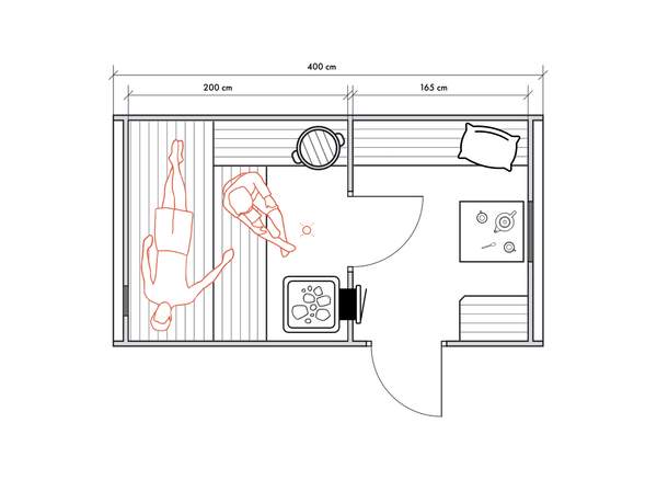 Несмотря на небольшие размеры, в данном типе бань можно обустроить все необходимые для комфортных банных процедур зоны для 2-4 человек.