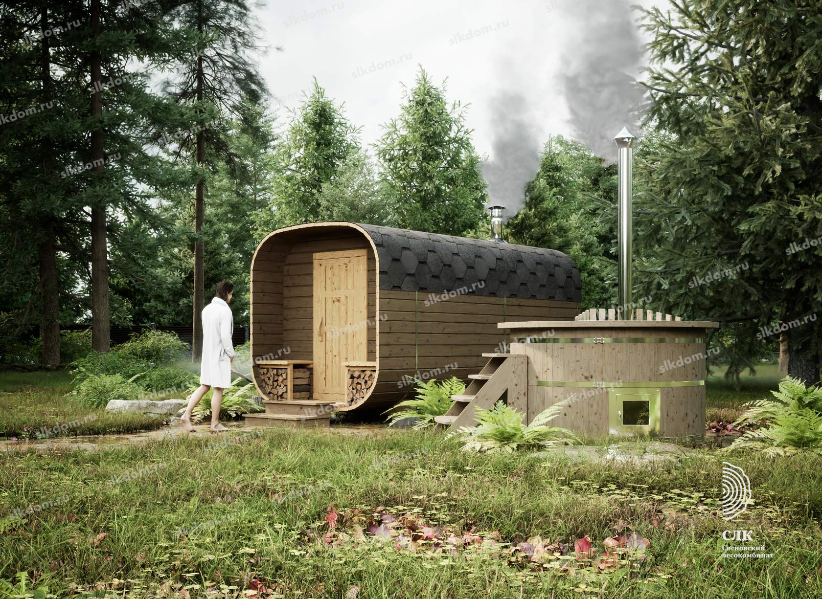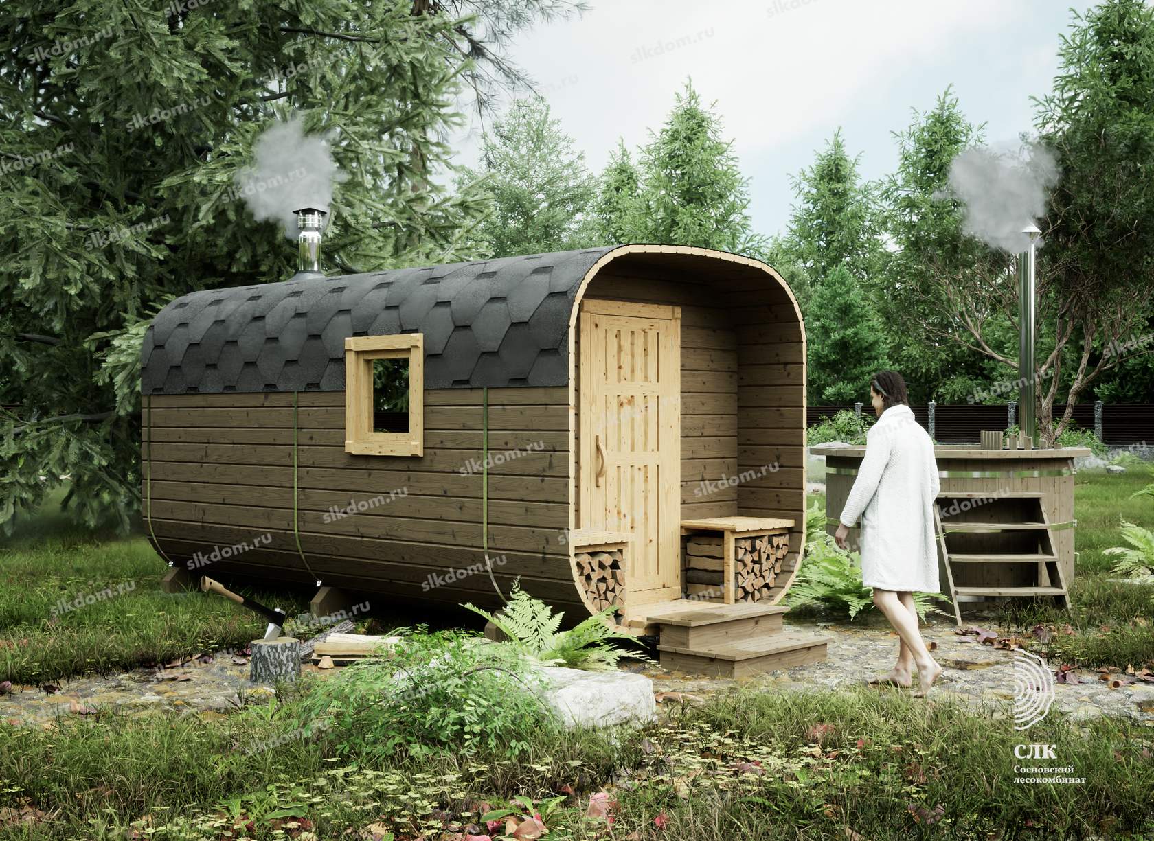 Экологичность. Бани-бочки изготавливают из чистой древесины, поэтому пар будет здоровым и полезным