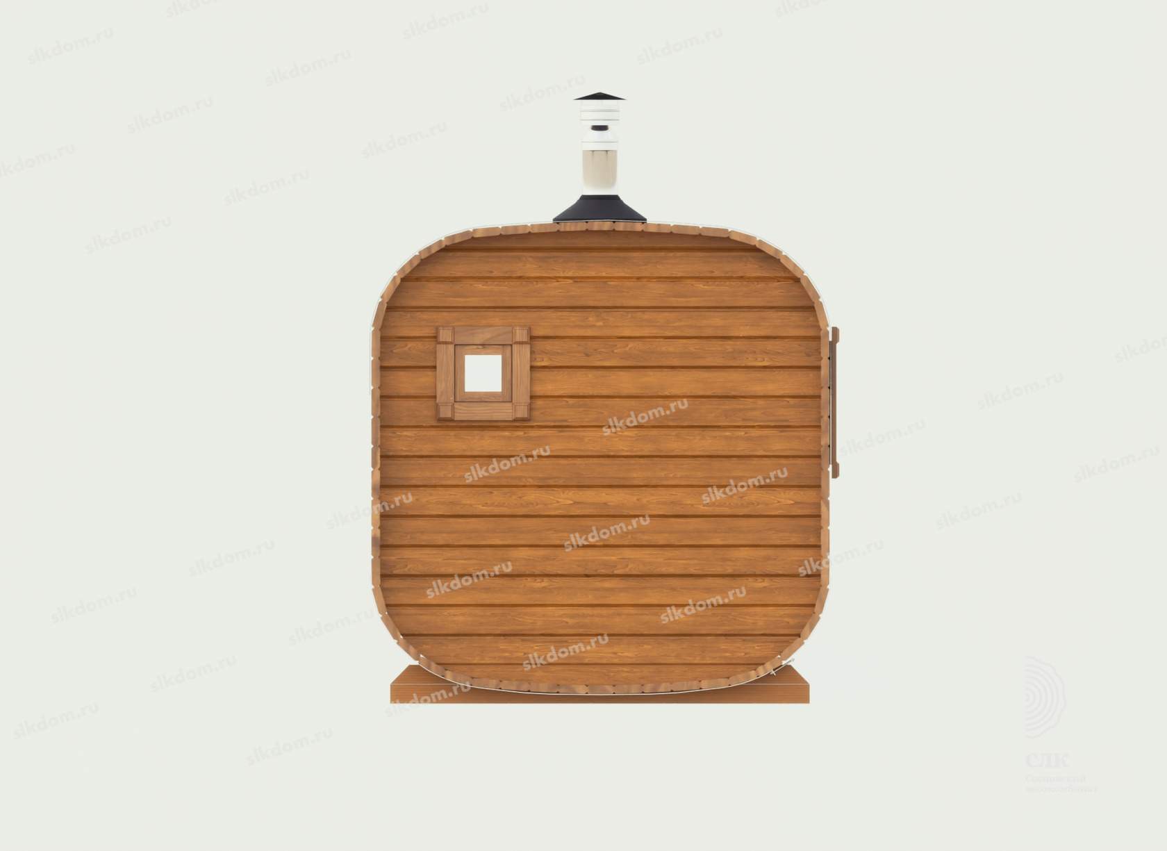 Покрытие корпуса бани, дверей и наличников - два слоя лессирующей краски с антисептиком Текстурол цвета на выбор из каталога, есть доп. опция – заменить лессирующую покраску на укрывного типа, выделить наличники и дверь другим цветом - стоимость уточняйте.