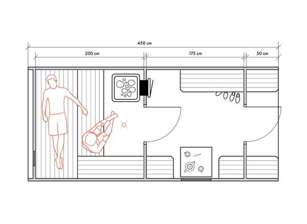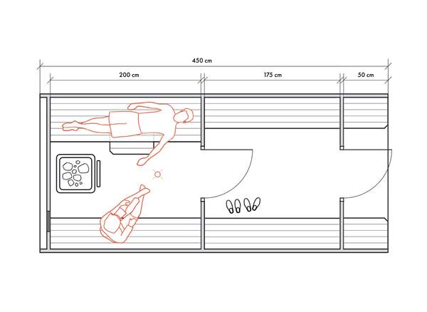 Несмотря на небольшие размеры, в данном типе бань можно обустроить все необходимые для комфортных банных процедур зоны для 2-4 человек.
