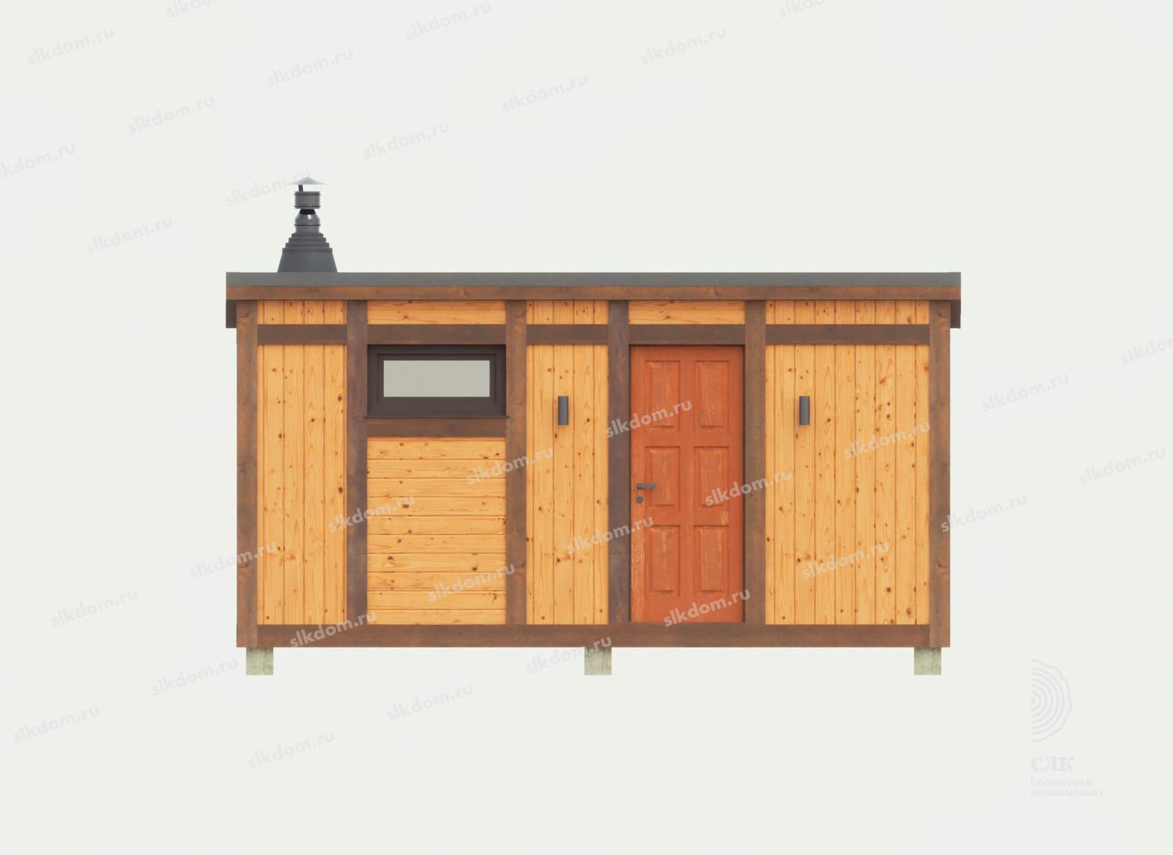 Наличники оконные, входная дверь и наличники двери выкрашиваются антисептиком укрывного типа, цвета на выбор. Таким образом в покрытии корпуса бани используется 2 разных цвета.