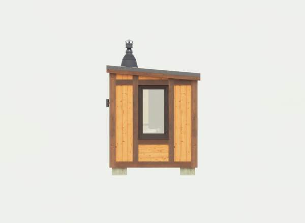 В парном помещении в базовой комплектации устанавливается деревянное окно 1000x500 мм с двойным стеклопакетом, внешнее стекло может имеет зеркальную поверхность (доп. опция), окно открывается на проветривание.