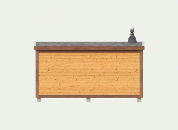 Поверх укладывается доска по длинной части кровли 100x25 мм с шагом 33 см, материал хвоя, ест. влажности. Покрытие кровли - профлист, размер листа 1200х2000 мм, толщина 0,45 мм, цвет на выбор - коричневый, серый, бордовый и зеленый, лобовая доска 200x20 мм камерной сушки, строганая. Покрытие кровли всегда можно заменить на другой материал, цены уточняйте. По краям кровли крепится торцевая планка из оцинкованного металла с полимерным покрытием.