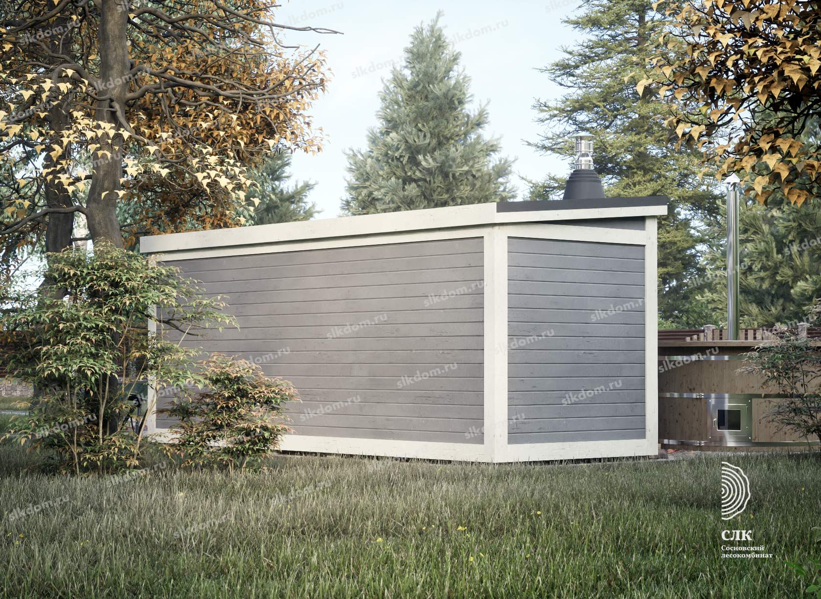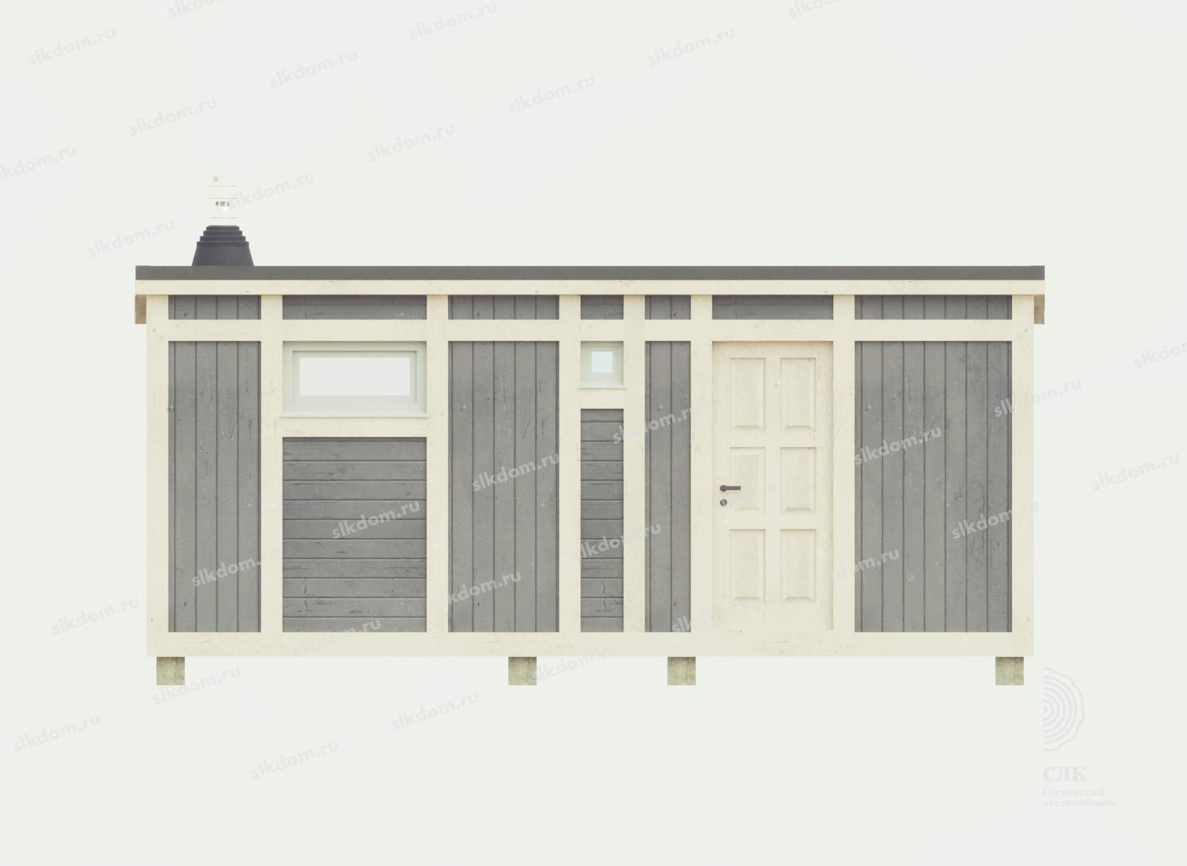 Наличники оконные, входная дверь и наличники двери выкрашиваются антисептиком укрывного типа, цвета на выбор. Таким образом в покрытии корпуса бани используется 2 разных цвета.