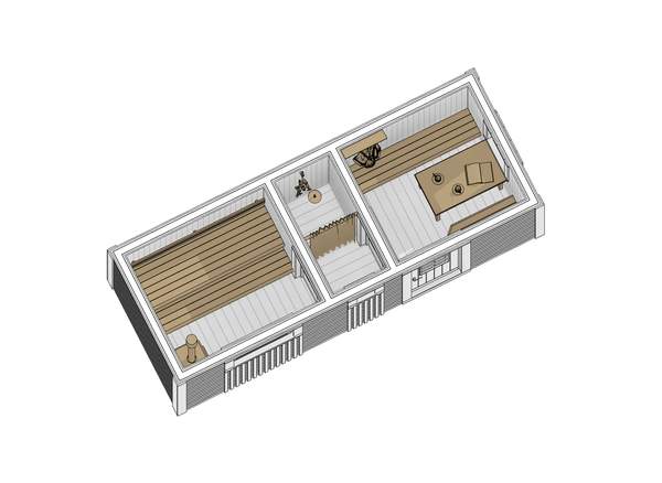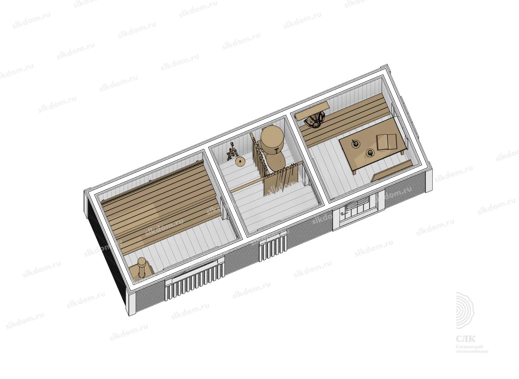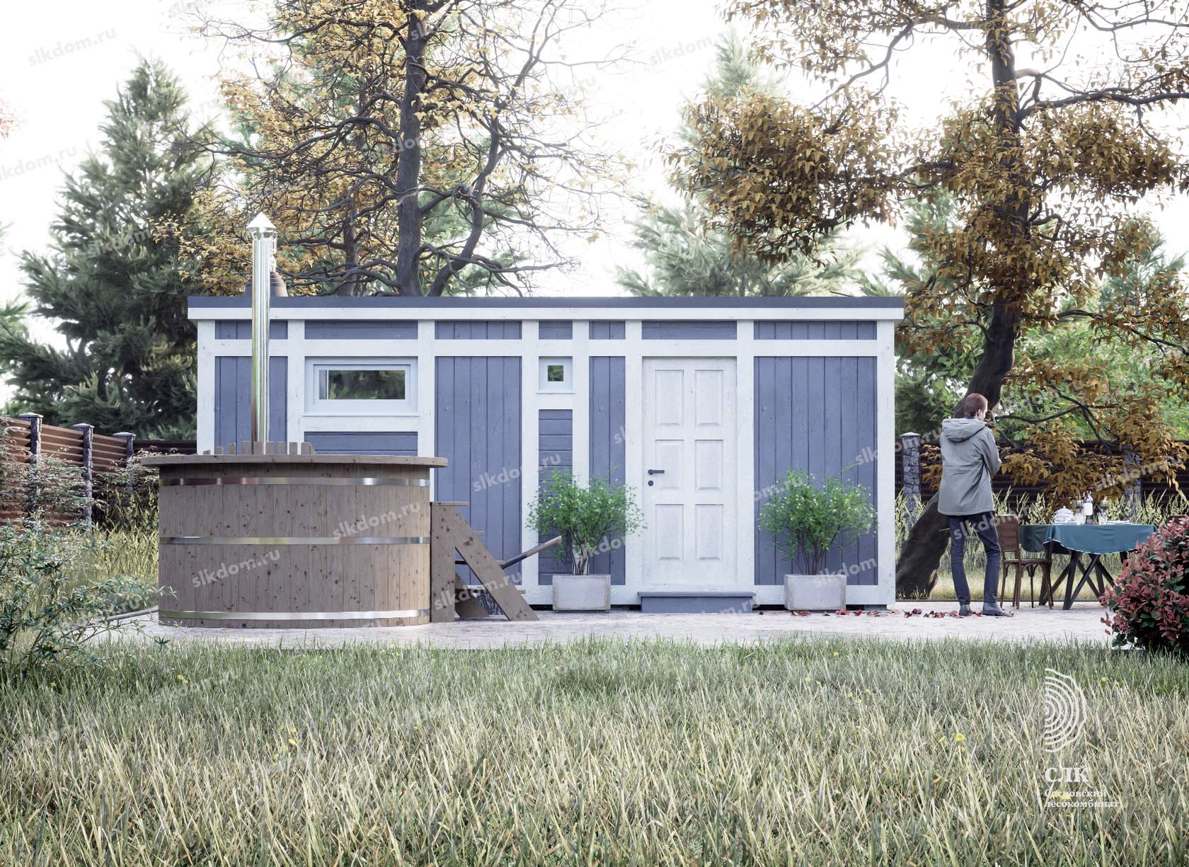 Комфортное размещение от трех до четырех человек. Две типовые планировки, которые всегда можно изменить по вашим пожеланиям. Сделано по каркасной технологии: в стенах, кровле и в полу 100 мм утеплителя. Комплектация бани - готовая к применению после установки на участке.