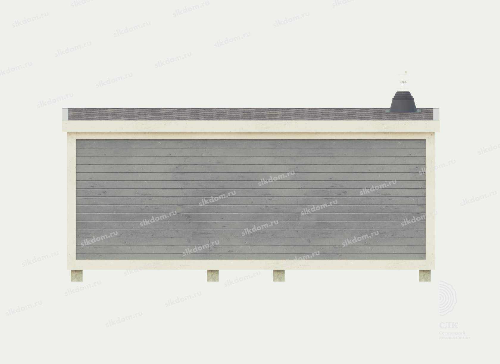 Поверх укладывается доска по длинной части кровли 100x25 мм с шагом 33 см, материал хвоя, ест. влажности. Покрытие кровли - профлист, размер листа 1200х2000 мм, толщина 0,45 мм, цвет на выбор - коричневый, серый, бордовый и зеленый, лобовая доска 200x20 мм камерной сушки, строганая. Покрытие кровли всегда можно заменить на другой материал, цены уточняйте. По краям кровли крепится торцевая планка из оцинкованного металла с полимерным покрытием.