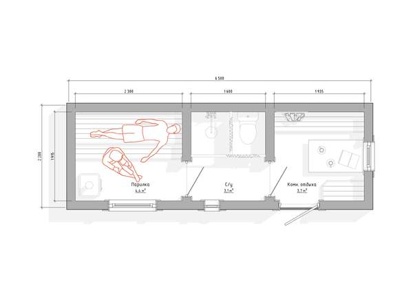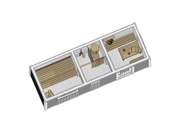 Мобильная баня Лира на три помещения - парная, помывочная (сан. узел) и предбанник.
