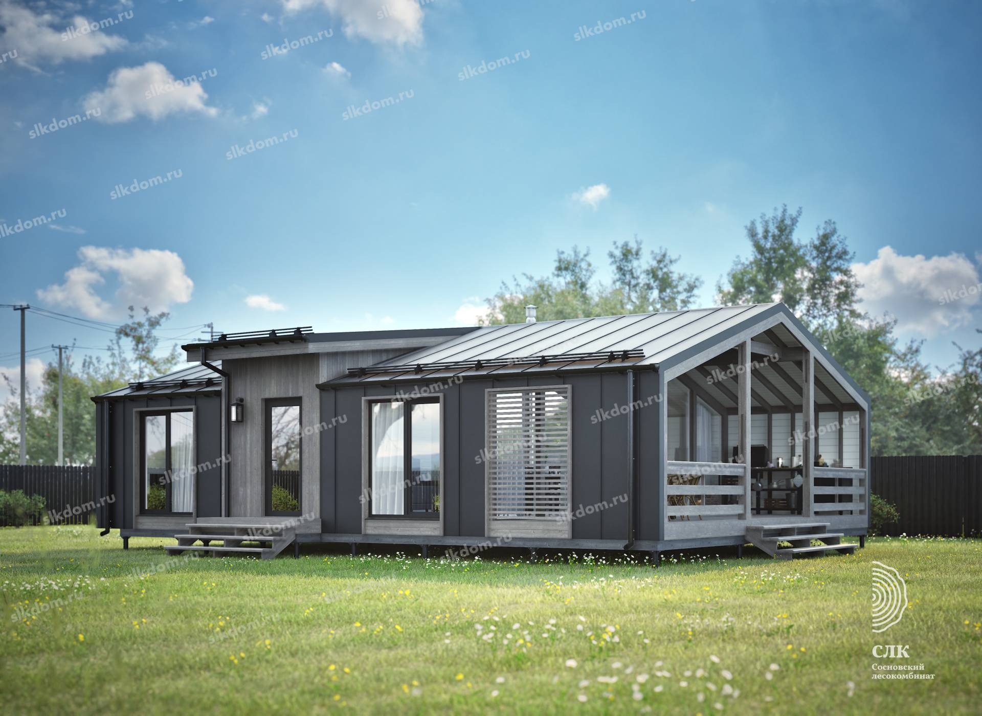 Кликфальц Grand Line 0,45 Drap TX с пленкой на замках RAL 7024 мокрый асфальт или имитация бруса карельский профиль 20x195 мм (сорт АB) материал хвоя, доска 20x195 мм, горизонтальное и вертикальное крепление, на выбор заказчика. Покраска в заводских условиях.