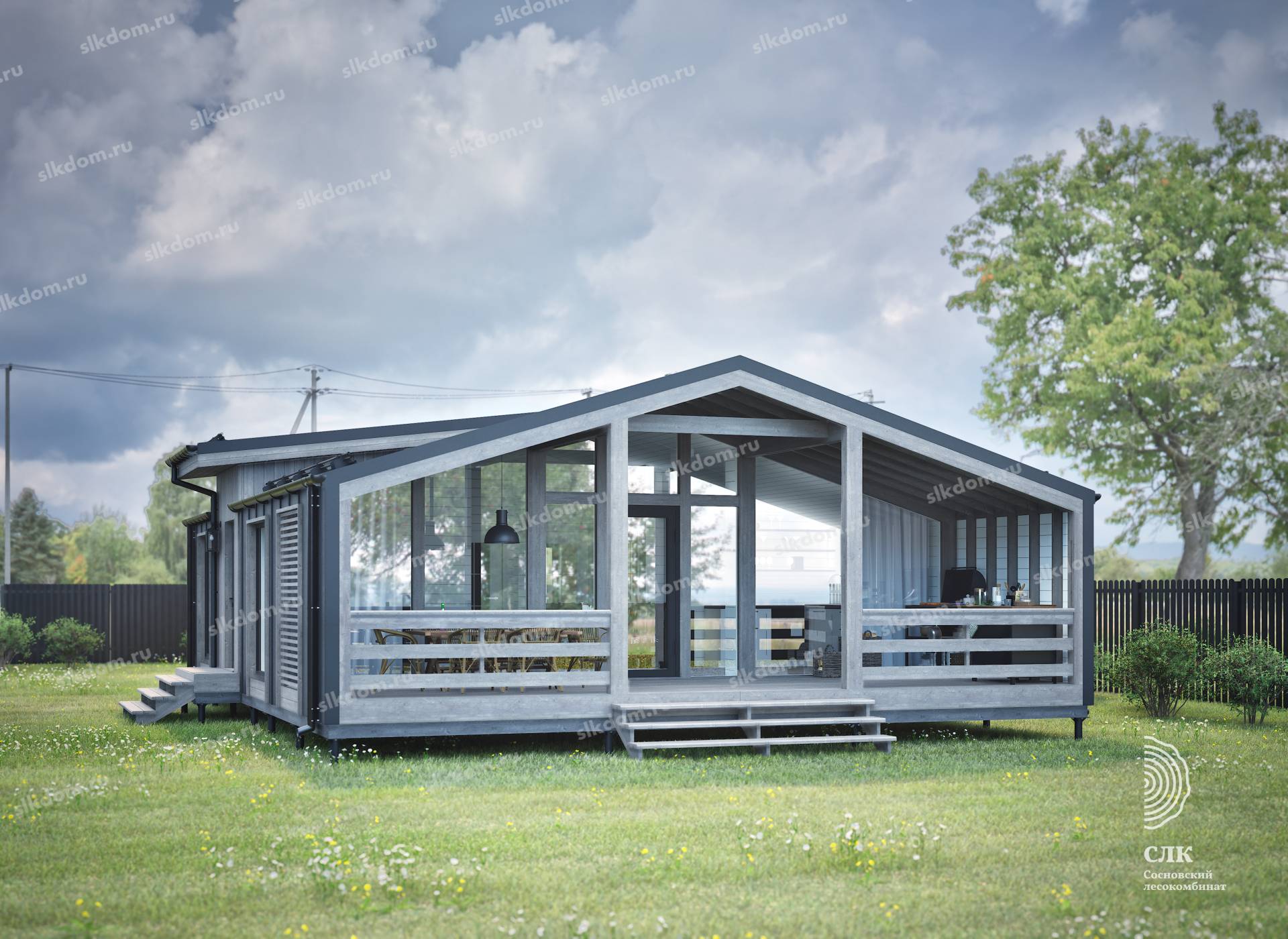 Полы, ступени веранды или крыльца: калиброванная доска камерной сушки толщиной 40 мм материал хвоя. Весь пиломатериал выкрашивается в заводских условиях.