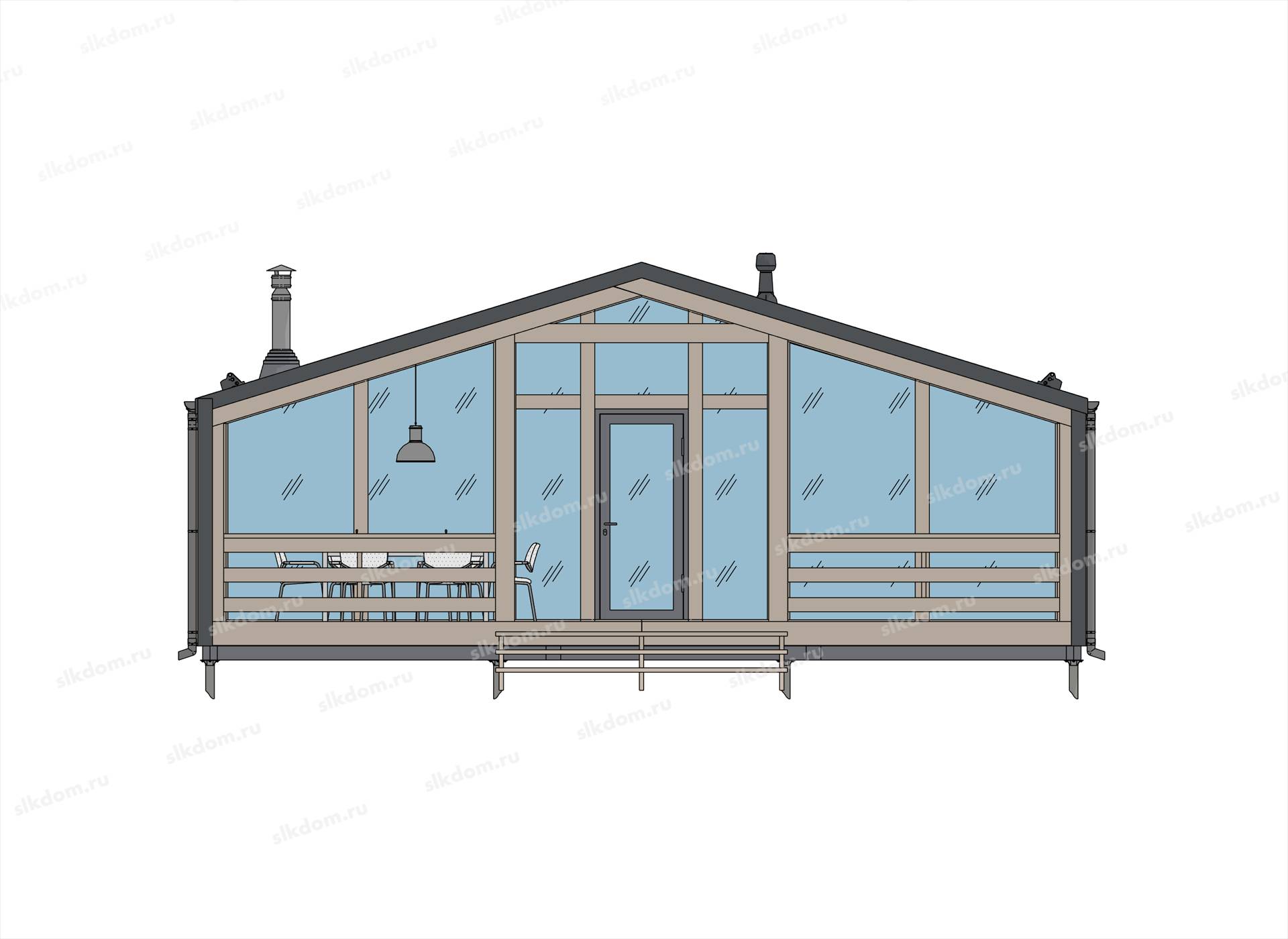 Полы, ступени веранды или крыльца: калиброванная доска камерной сушки толщиной 40 мм материал хвоя. Весь пиломатериал выкрашивается в заводских условиях.